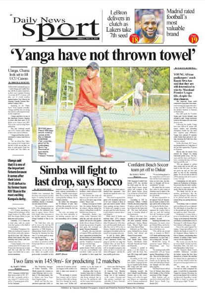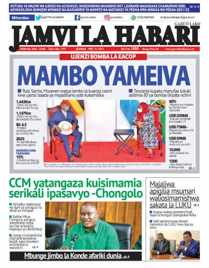 Home Uncategorized HABARI KUU ZILIZOPO MAGAZETI YA LEO IJUMAA MEI 21-2021 HABARI KUU ZILIZOPO MAGAZETI YA LEO IJUMAA MEI 21-2021 By Joseph Nelson - May 21, 2021 FacebookTwitterTelegramWhatsAppCopy URL Thank you for reading this post, don't forget to subscribe!