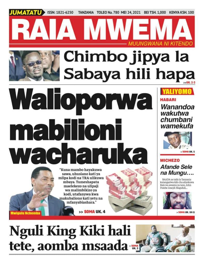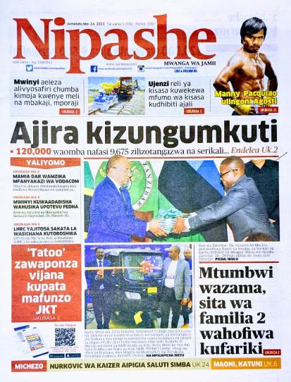 Home Uncategorized KUTOKA MAGAZETI J.TATU YA LEO MEI 24-2021 KUTOKA MAGAZETI J.TATU YA LEO MEI 24-2021 By Joseph Nelson - May 24, 2021 FacebookTwitterTelegramWhatsAppCopy URL Thank you for reading this post, don't forget to subscribe! Karibu msomaji wetu kwenye meza ya Magazeti ya leo uweze kujisomea habari kemkem za ndani na Nje ya Nchi yetu, Karibu sana.