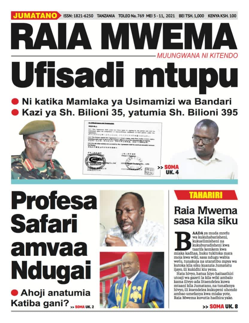 Home Uncategorized KUTOKA MAGAZETINI ASUBUHI YA LEO J.TANO MEI-5 2021 KUTOKA MAGAZETINI ASUBUHI YA LEO J.TANO MEI-5 2021 By Joseph Nelson - May 5, 2021 FacebookTwitterTelegramWhatsAppCopy URL Thank you for reading this post, don't forget to subscribe! Karibu msomaji wetu kwenye meza ya Magazeti ya leo uweze kujisomea habari kemkem za ndani na Nje ya Nchi yetu, Karibu sana.
