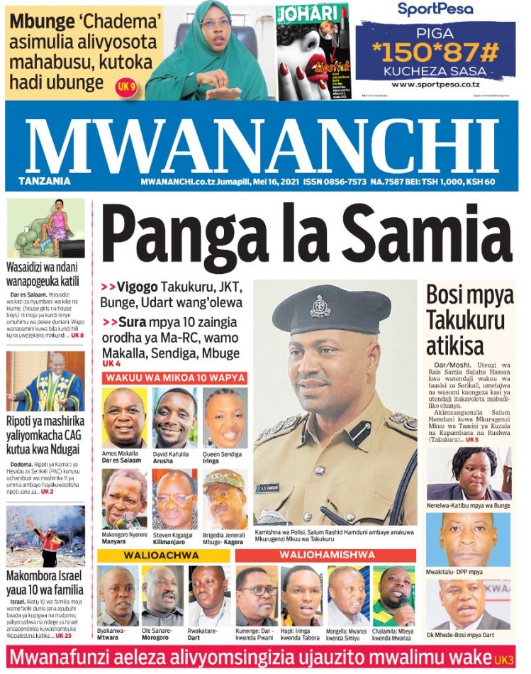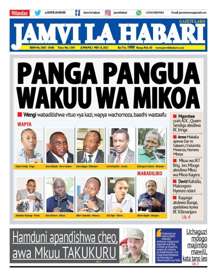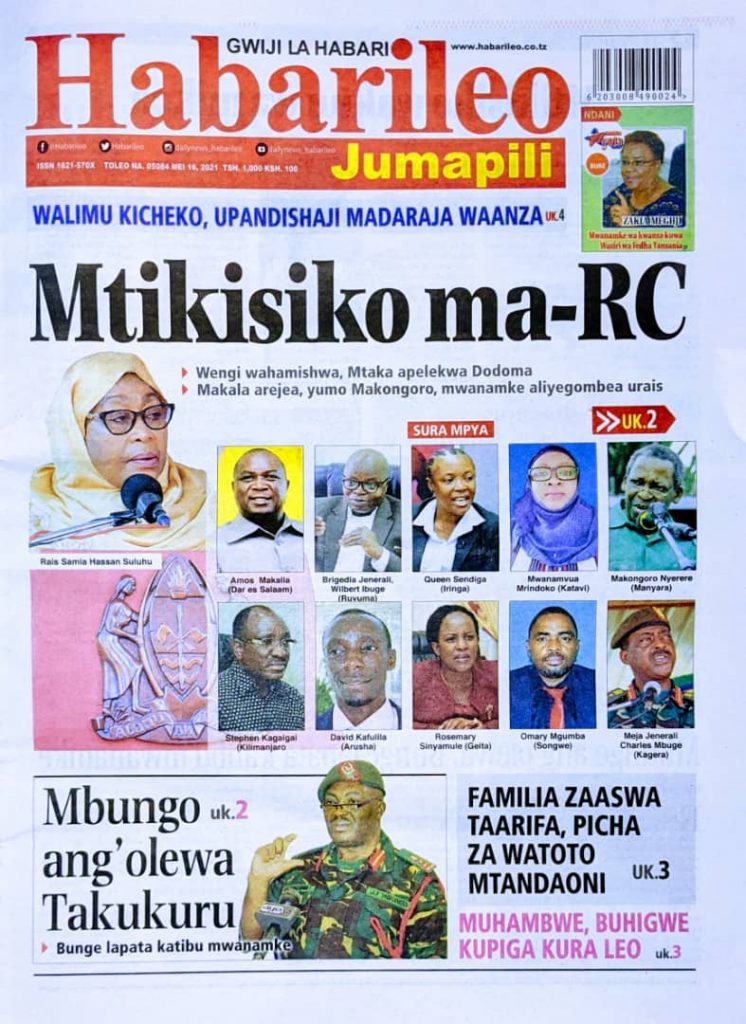 Home Uncategorized MAGAZETI YA LEO J.PILI MEI 16-2021 MAGAZETI YA LEO J.PILI MEI 16-2021 By Joseph Nelson - May 16, 2021 FacebookTwitterTelegramWhatsAppCopy URL Thank you for reading this post, don't forget to subscribe! Karibu msomaji wetu kwenye meza ya Magazeti ya leo uweze kujisomea habari kemkem za ndani na Nje ya Nchi yetu, Karibu sana.