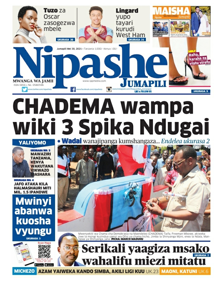Home Uncategorized MAGAZETI YA LEO J.PILI MEI 30-2021 MAGAZETI YA LEO J.PILI MEI 30-2021 By Joseph Nelson - May 30, 2021 FacebookTwitterTelegramWhatsAppCopy URL Thank you for reading this post, don't forget to subscribe!