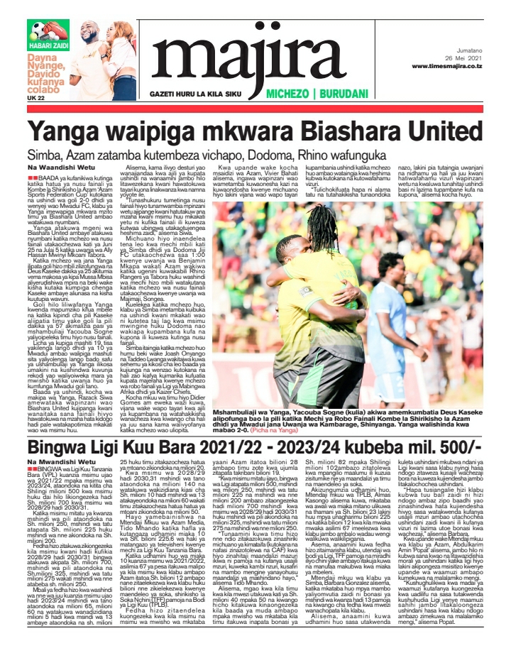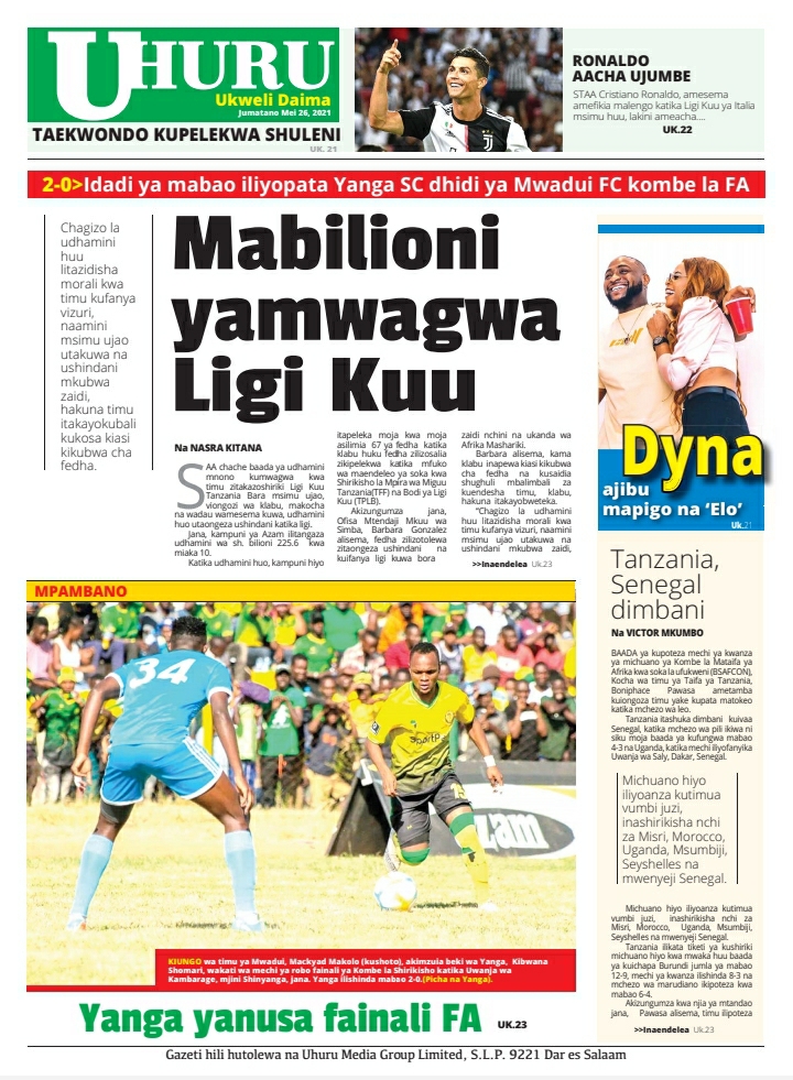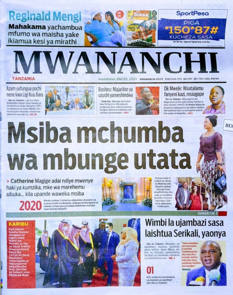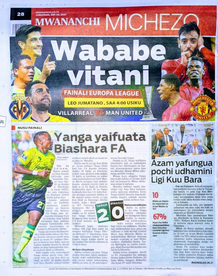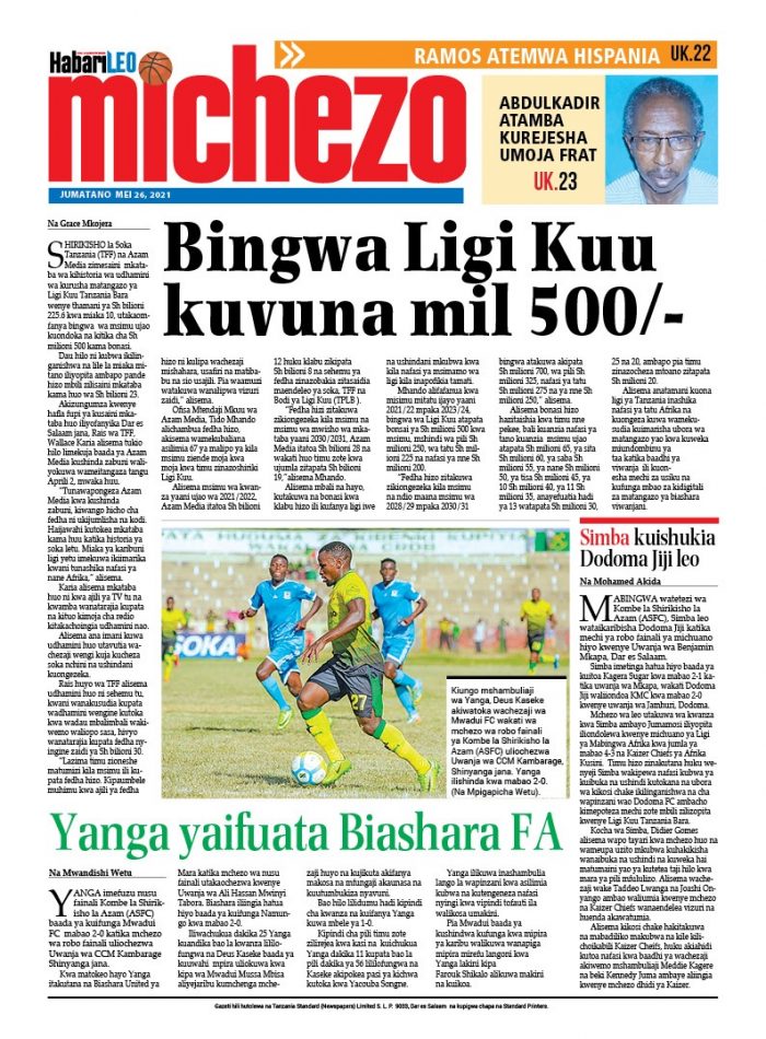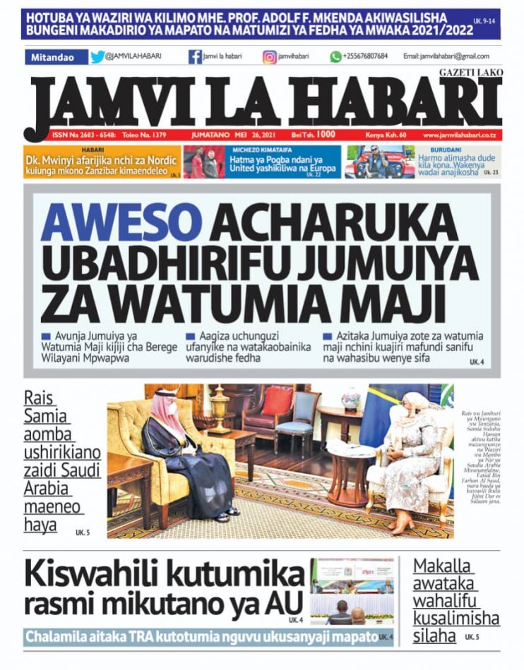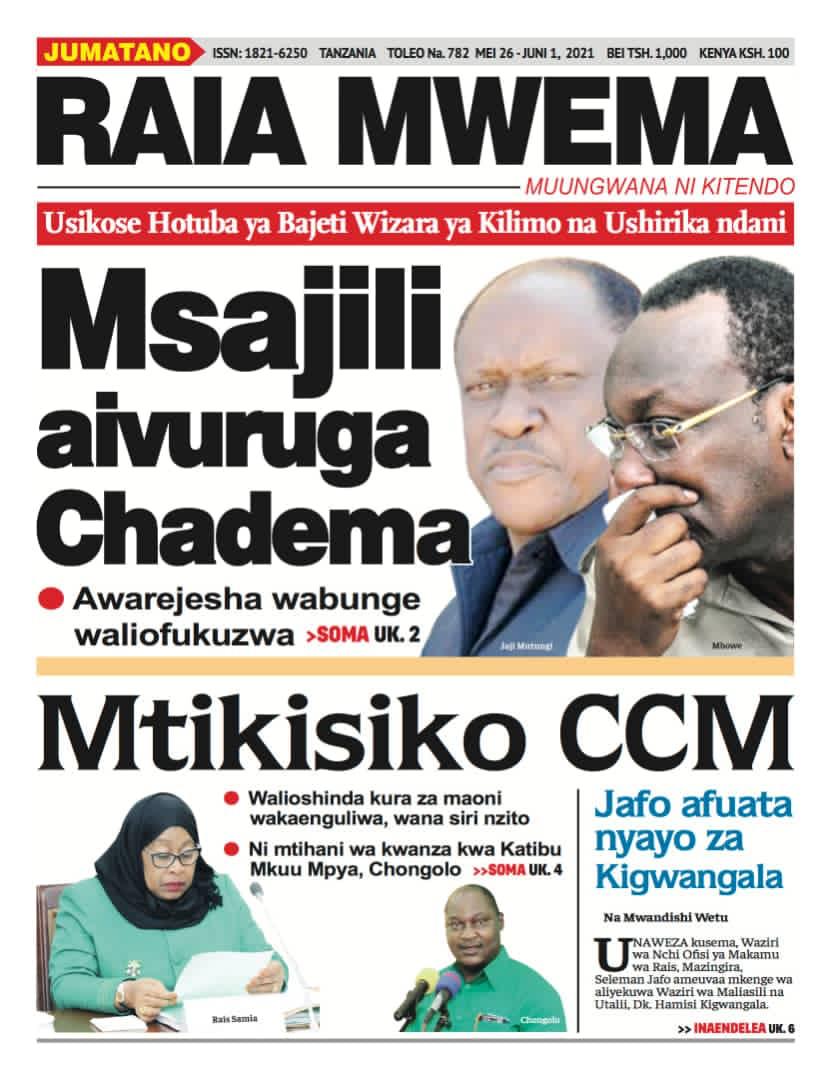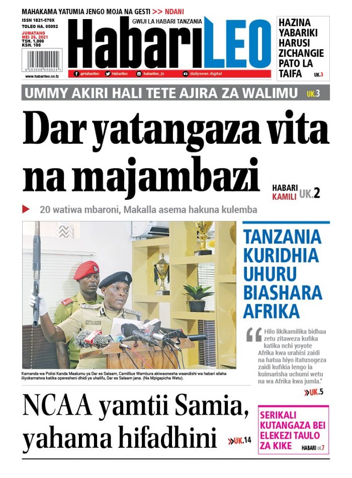 Home Uncategorized MAGAZETI YA LEO J.TANO MEI 26-2021.. MAGAZETI YA LEO J.TANO MEI 26-2021.. By Joseph Nelson - May 26, 2021 FacebookTwitterTelegramWhatsAppCopy URL Thank you for reading this post, don't forget to subscribe! Karibu msomaji wetu kwenye meza ya Magazeti ya leo uweze kujisomea habari kemkem za ndani na Nje ya Nchi yetu, Karibu sana.