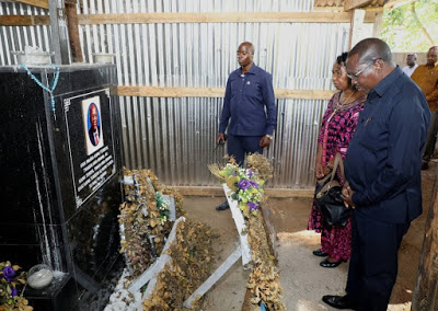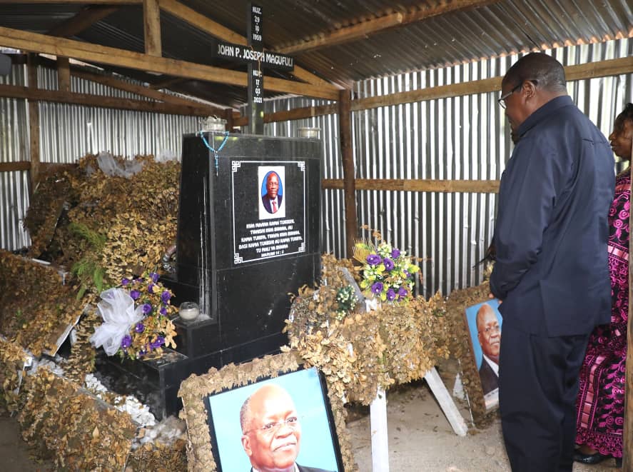 | Makamu wa Rais wa Jamhuri ya Muungano wa Tanzania Mhe. Dkt. Philip Isdor Mpango, akizuru Kaburi la aliyekuwa Rais wa Jamhuri ya Muungano wa Tanzania Hayati Dkt. John Pombe Magufuli wakati aliposi mama kwa muda Wilayani Chato alipokuwa njiani akielekea Wilayani Kibondo Mkoani Kigoma kwa ajili ya kufunga Kampeni za Chama cha Mapinduzi CCM za Jimbo la Muhambwe kwa ajili ya UIchaguzi Mdogo wa Kiti cha Ubunge unaotarajiwa kufanyika Jumapili tarehe 16 Mei 2021 kufuatia Kifo cha aliyekuwa Mbunge wa Jimbo hilo Hayati Nditye. |