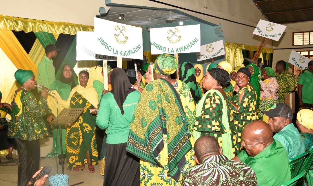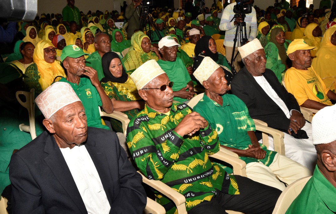 VIONGOZI wa Chama Cha Mapinduzi wa Mkoa wa Mjini Kichama wakiwa katika ukumbi wa CCM Mkoa wa Mjini Amanin wakati wa ziara ya Mjumbe wa Halmashauri Kuu ya CCM Taifa,ambae pia ni Rais wa Zanzibar na Mwenyekiti wa Baraza la Mapinduzi Mhe.Dk.Hussein Ali Mwinyi.(hayupo pichani) wakati wa mkutano wa kuzungumza na kutoa shukrani kwa Viongozi wa CCM na Mabalozi wa Mkoa huo.(Picha na Ikulu)