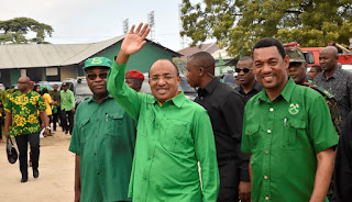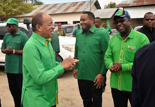 MJUMBE wa Halmashauri Kuu ya CCM Taifa ambae pia ni Rais wa Zanzibar na Mwenyekiti wa Baraza la Mapinduzi Mhe.Dk.Hussein Ali Mwinyi akisalimiana na Mjumbe wa Halmashauri Kuu ya CCM Taifa Mhe. Zuberi Ali Maulid na Mkuu wa Mkoa wa Mjini Magharibi Unguja Mhe. Idrisa Mustafa Kitwana, alipowasili katika viwanja vya CCM Mkoa wa Mjini Amaan Kichama, akiwa katika ziara yake kuzungumza na kutowa shukrani kwa Viongozi wa CCM.(P