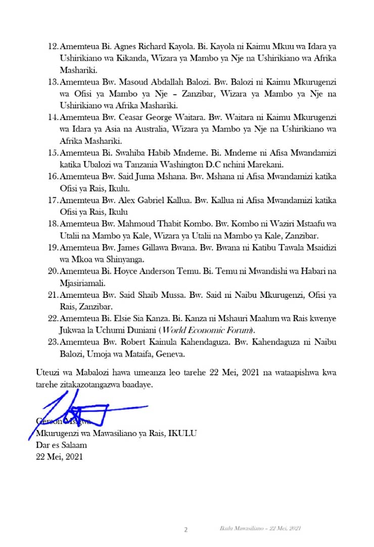 Home LOCAL RAIS SAMIA AFANYA UTEUZI WA MABALOZI. RAIS SAMIA AFANYA UTEUZI WA MABALOZI. By Joseph Nelson - May 22, 2021 FacebookTwitterTelegramWhatsAppCopy URL Thank you for reading this post, don't forget to subscribe!