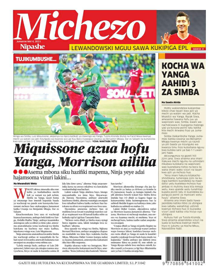 Home Uncategorized VICHWA VYA HABARI VILIVYOTAWALA MAGAZETI YA LEO J.NNE MEI 4-2021 VICHWA VYA HABARI VILIVYOTAWALA MAGAZETI YA LEO J.NNE MEI 4-2021 By Joseph Nelson - May 4, 2021 FacebookTwitterTelegramWhatsAppCopy URL Thank you for reading this post, don't forget to subscribe! Karibu msomaji wetu kwenye meza ya Magazeti ya leo uweze kujisomea habari kemkem za ndani na Nje ya Nchi yetu, Karibu sana.