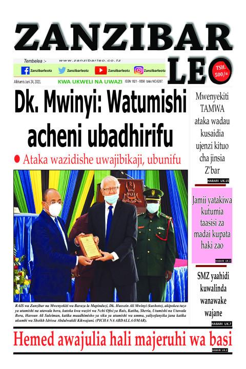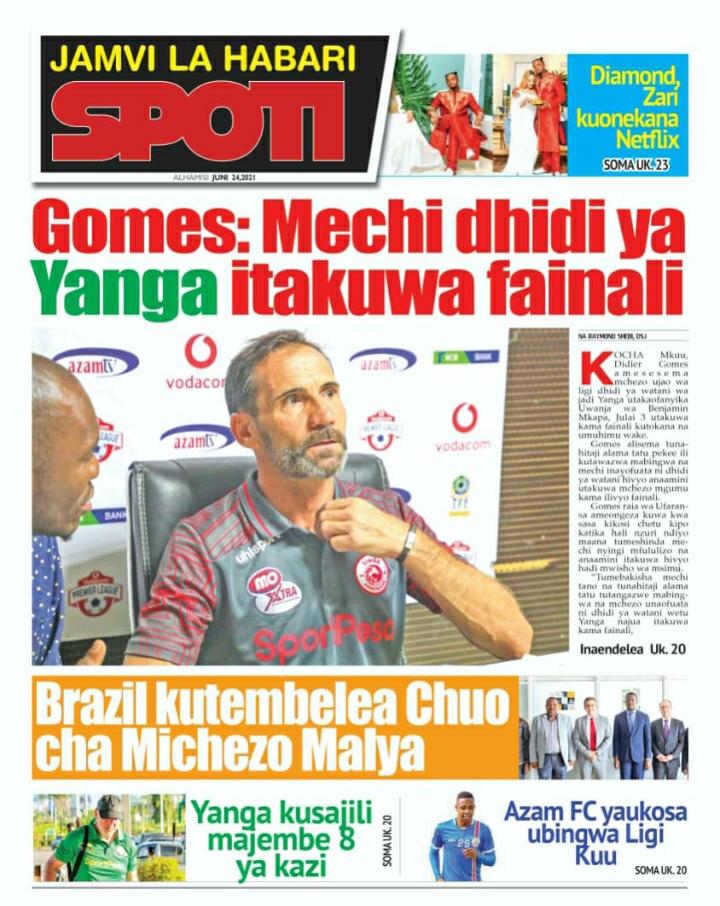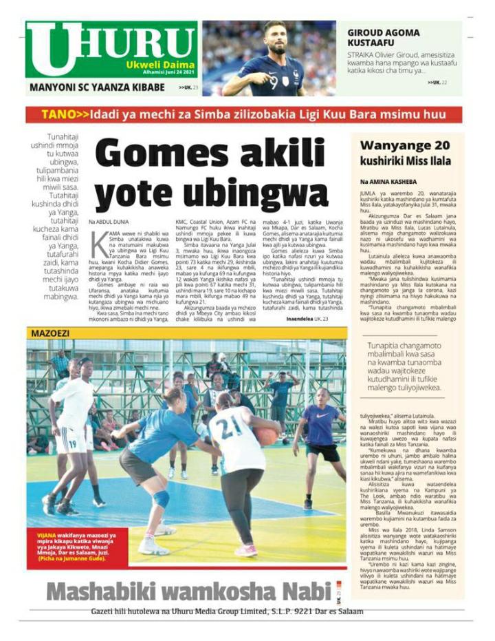 Home Uncategorized KARIBU USOME MAGAZETI YA LEO ALHAMISI JUNI-24-2021 KARIBU USOME MAGAZETI YA LEO ALHAMISI JUNI-24-2021 By Joseph Nelson - June 24, 2021 FacebookTwitterTelegramWhatsAppCopy URL Thank you for reading this post, don't forget to subscribe! Karibu msomaji wetu kwenye meza ya Magazeti ya leo uweze kujisomea habari kemkem za ndani na Nje ya Nchi yetu, Karibu sana.