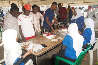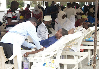 | Sehemu ya wananchi waliojitokeza katika kilele cha siku ya wachangia damu Duniani wakitoa damu, hafla iliyofanyika viwanja vya Makao Makuu ya Benki ya Damu Sebleni kwa wazee. |