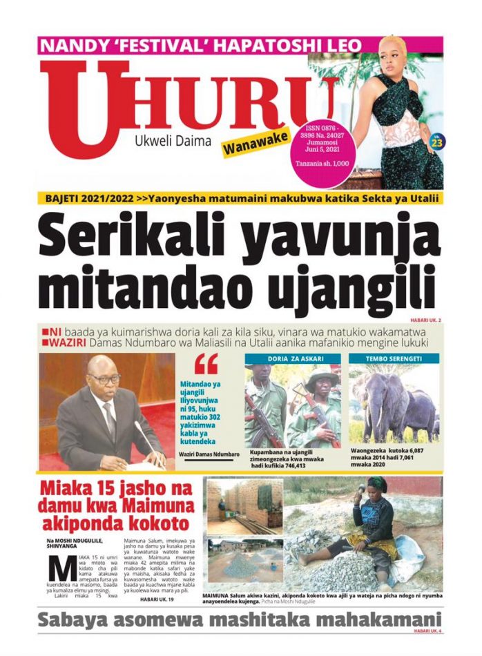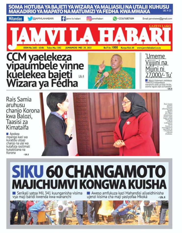 Home Uncategorized MAGAZETI YA LEO J.MOSI JUNI 5-2021 MAGAZETI YA LEO J.MOSI JUNI 5-2021 By Joseph Nelson - June 5, 2021 FacebookTwitterTelegramWhatsAppCopy URL Thank you for reading this post, don't forget to subscribe!
