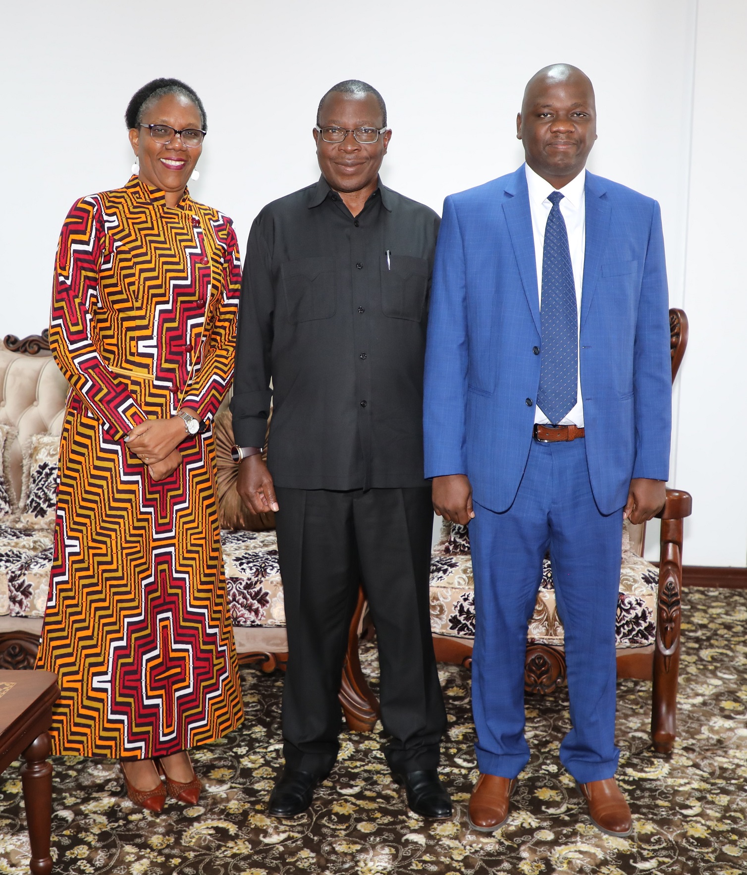 | Makamu wa Rais wa Jamhuri ya Muungano wa Tanzania Mhe. Dkt. Philip Isdor Mpango, katikati akiwa katika picha ya pamoja na Katibu Mkuu Ofisi ya Makamu wa Rais Bibi Mary Maganga kulia na Naibu Katibu Mkuu Ofisi ya Makamu wa Rais Bw. Mohammed Khamis Abdalla, alipokutana nao Ofisini kwake Ikulu Chamwino Jijini Dodoma leo Juni 01,2021. |