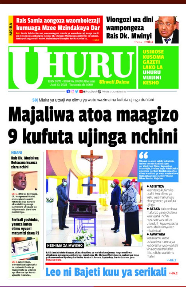 Home Uncategorized PITIA HAPA VICHWA VYA HABARI MAGAZETI YA LEO ALHAMISI JUNI 10-2021 PITIA HAPA VICHWA VYA HABARI MAGAZETI YA LEO ALHAMISI JUNI 10-2021 By Joseph Nelson - June 10, 2021 FacebookTwitterTelegramWhatsAppCopy URL Thank you for reading this post, don't forget to subscribe! Karibu msomaji wetu kwenye meza ya Magazeti ya leo uweze kujisomea habari kemkem za ndani na Nje ya Nchi yetu, Karibu sana.
