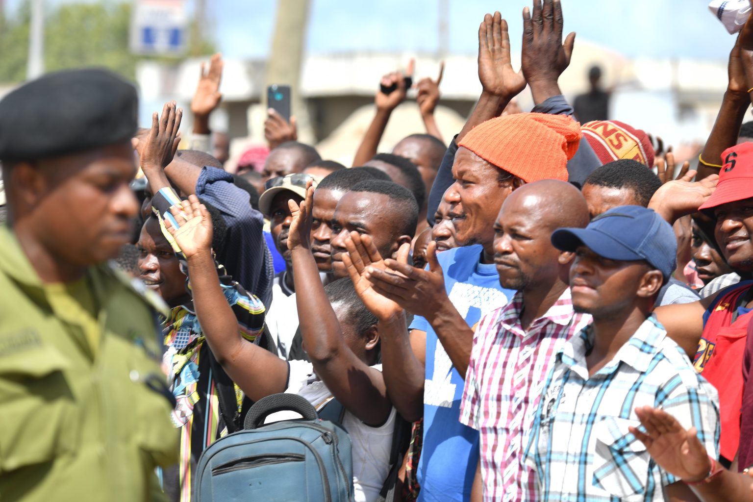 | Wananchi wa Mbagala wakishangilia wakati Rais wa Jamhuri ya Muungano wa Tanzania Mhe. Samia Suluhu Hassan alipokuwa akizungumza nao wakati alipofanya ziara ya kushtukiza kukagua maendeleo ya Ujenzi wa Barabara ya Mabasi ya Mwendokasi katika barabara ya Kilwa. |