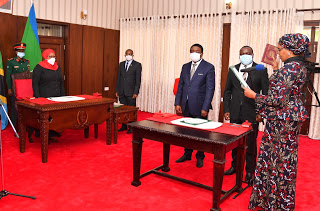 Rais Samia Suluhu Hassan akimuapisha Balozi Batilda Salha Buriani kuwa Mkuu wa mkoa wa Tabora, Ikulu, Chamwino jijini Dodoma, leo.