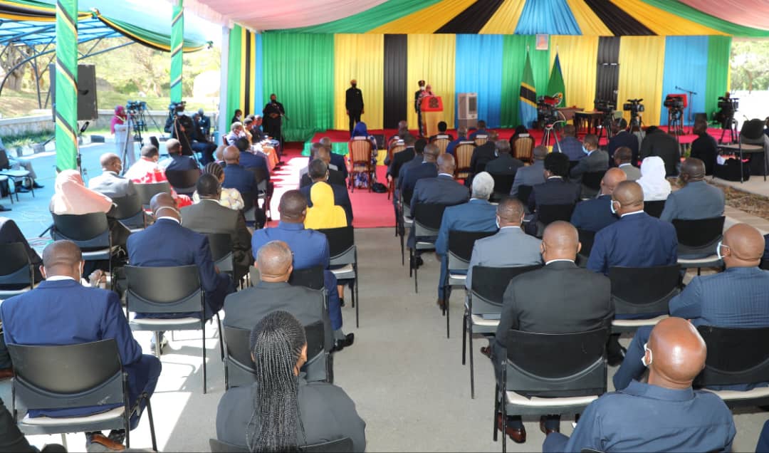 | Rais wa Jamhuri ya Muungano wa Tanzania Mhe. Samia Suluhu Hassan, akizungumza na Makatibu Tawala wa Mikoa baada ya kuuwaapisha Ikulu Chamwino Jijini Dodoma leo Juni 02,2021. |
