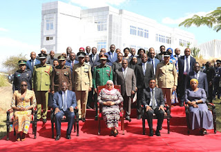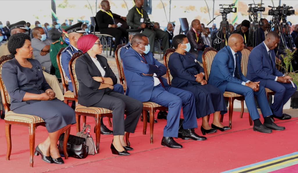 | Rais wa Jamhuri ya Muungano wa Tanzania Mhe. Samia Suluhu Hassan, Makamu wa Rais wa Jamhuri ya Muungano wa Tanzania Mheshimiwa Dkt. Philip Isdor Mpango na Waziri Mkuu Mhe. Kassim Majaliwa wakiwa katika Picha ya pamoja na Wakuu wa Mkoa na Makatibu Tawala wa Mikoa baada ya kumalizika kwa Hafla ya kuapishwa kwa Makatibu Tawala wa Mikoa Ikulu Chamwino Jijini Dodoma leo Juni 02,2021. |