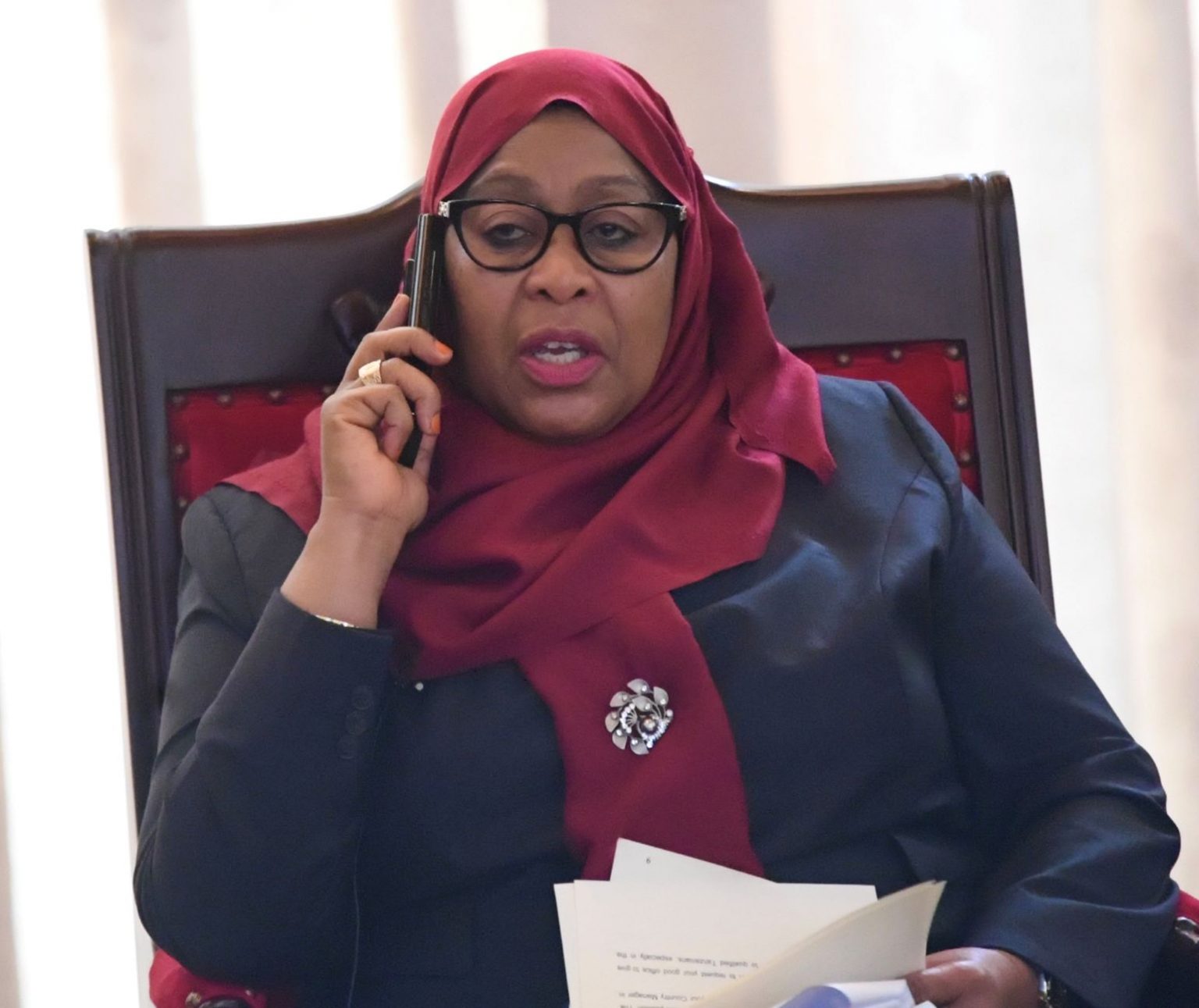 Rais wa Jamhuri ya Muungano wa Tanzania, Mhe. Samia Suluhu Hassan akizungumza kwa njia ya Simu masuala mbalimbali ya Kimaendeleo na Rais wa Benki ya Maendeleo ya Afrika (AfDB) Dkt. Adesina Akinwumi ambaye alikuwa akizungumza kutokea Makao Makuu ya Benki hiyo Abidjan nchi Ivory Coast leo tarehe 11 Juni, 2021.