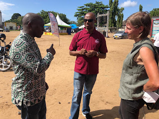 Mkurugenzi wa Utafiti, Mafunzo na Ugani Dkt. Angelo Mwilawa (kushoto) akielezea namna Wizara inavyojipanga kushirikiana na shirika la kimataifa la Heifer kwenye shughuli za Utafiti muda mfupi baada ya kutembelea banda la shirika hilo leo (02.06.2021) kwenye maonesho ya wiki ya Maziwa yanayofanyika kwenye viwanja vya Tangamano jijini Tanga, Wengine pichani ni Mkurugenzi wa Shirika hilo anayesimamia mradi wa usindikaji maziwa Mark tsoxo (katikati) na kiongozi wa miradi kutoka Shirika la kimataifa la CIAT ambalo linaratibu mradi wa utafiti wa malisho yanayozingatia utunzanji wa mazingira, An Notenbaert.