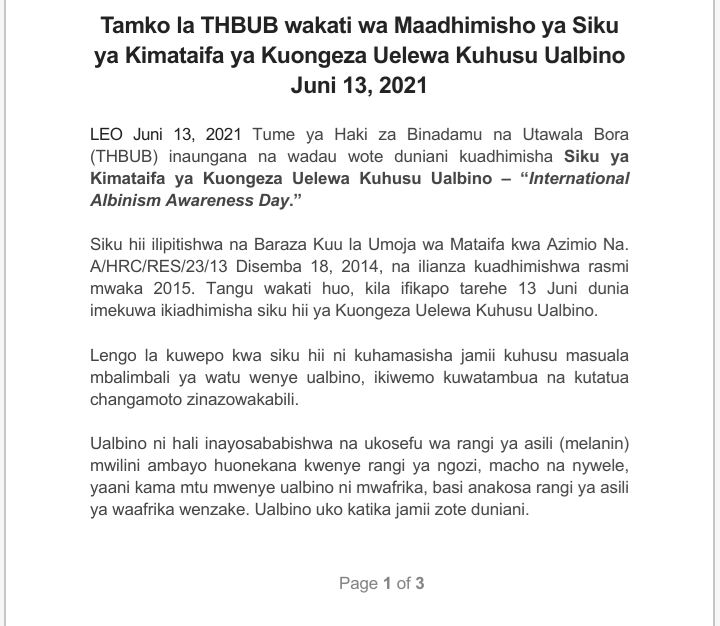 Home LOCAL THBUB YATOA TAMKO MAALUM WAKATI WA MAADHIMISHO YA ALBINO THBUB YATOA TAMKO MAALUM WAKATI WA MAADHIMISHO YA ALBINO By Joseph Nelson - June 13, 2021 FacebookTwitterTelegramWhatsAppCopy URL Thank you for reading this post, don't forget to subscribe!