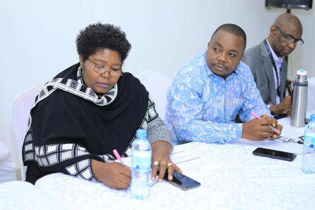 Kulia ni Roberta Feruzi Afisa Mwandamizi Elimu Kwa Umma na James Ndege Afisa Mwandamizi Elimu kwa Umma wakifuatilia mada zilizokuwa zikitolewa katika na wataalam katika kikaokazi hicho.