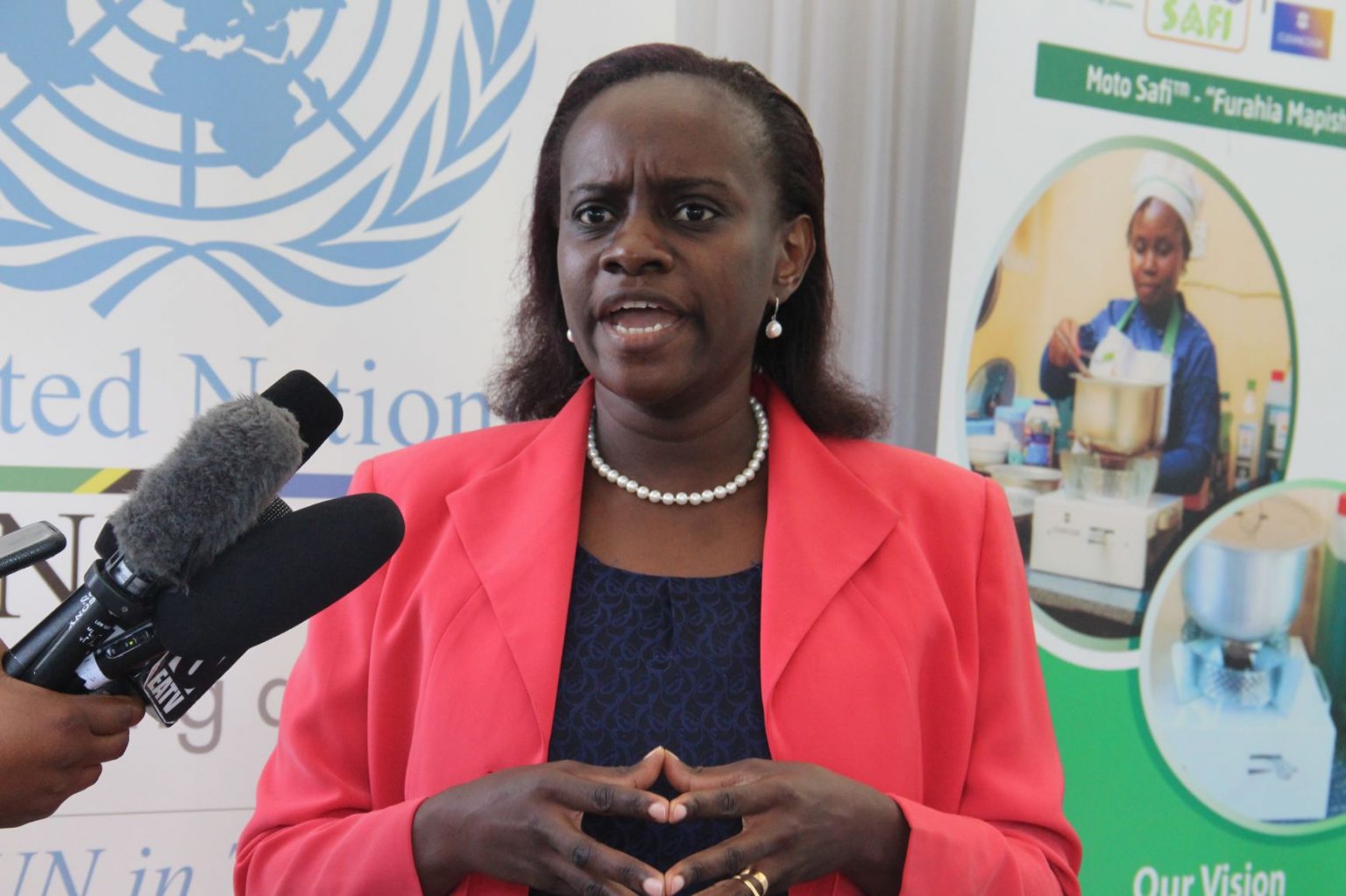 | Mwakilishi Mkazi wa Shirika la Umoja wa Mataifa la Mazingira, (UNEP) Clara Makenya,akizungumza na waandishi wa habari wakati wa kilele cha Maadhimisho ya siku ya Mazingira Duniani yaliyofanyika leo June 5,2021 jijini Dodoma. |