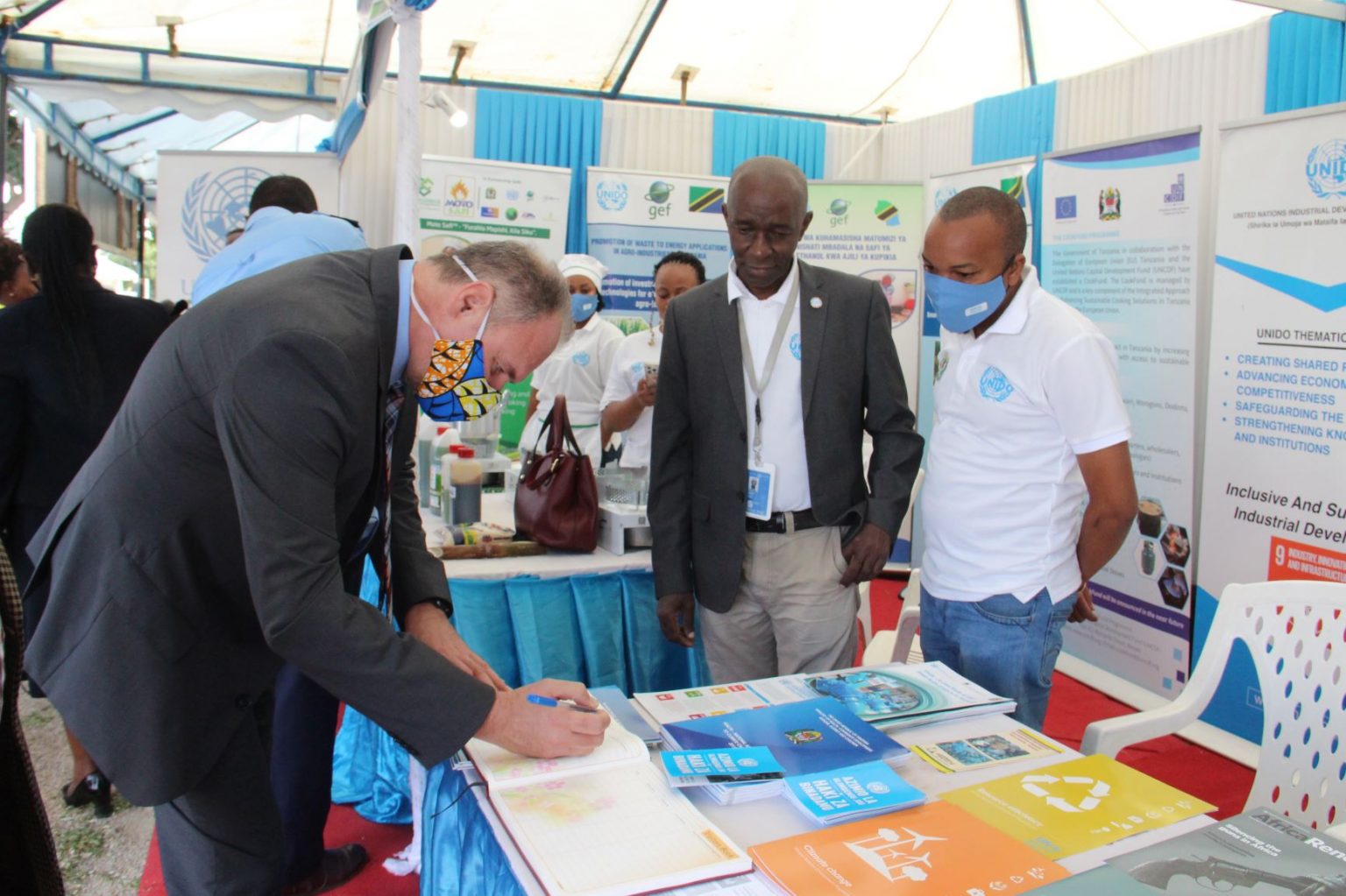 | Mratibu Mkazi wa Umoja wa Mataifa (UN) nchini, Zlatan Milizic,akisaini kitabu cha wageni mara baada ya kutembelea banda la UN katika maonyesho ya kilele cha Maadhimisho ya siku ya Mazingira Duniani yaliyofanyika leo June 5,2021 jijini Dodoma. |