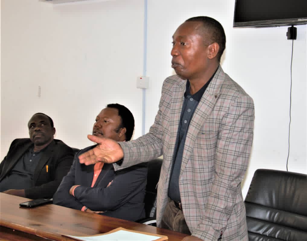 Mkurugenzi wa Idara ya Maendeleo ya Jamii Patrick Golwike akieleza jambo mbele ya Katibu Mkuu Wizara ya Afya- Idara Kuu ya Maendeleo ya Jamii Dkt. John Jingu, wakati wa makabidhiano ya ngao ya ushindi wa kwanza katika maonesho ya pili ya elimu ya ufundi yaliyofanyika hivi karibuni jijini Dodoma. (Picha zote na Kitengo cha Mawasiliano Serikalini – WAMJW).