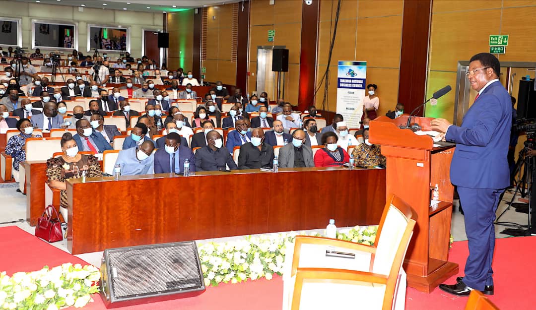 | Waziri Mkuu wa Jamhuri ya Muungano wa Tanzania Mhe. Kassim Majaliwa akifungua kongamano la siku 100 za Mheshimiwa Samia Suluhu Hassan Rais wa Jamhuri ya Muungano wa Tanzania, katika kituo cha Mikutano cha Kimataifa cha Julius Nyerere Jijini Dar es salaam leo Juni 27,2021. |