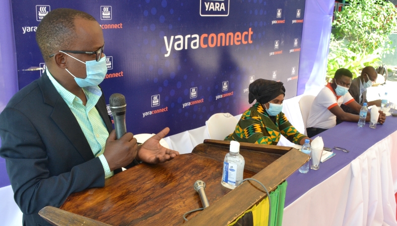 Mkuu wa Wilaya ya Tabora, Dk. Yahya Nawanda, akizungumza wakati wa hafla ya uzinduzi wa program ya yaraConnect kwa Mkoa wa Dodoma jana. Programu hiyo inayopatikana kwenye simu janja kupitia ‘play store na app store’ inalenga katika kutoa elimu ya utaalamu wa masuala ya kilimo ilizinduliwa na Mkuu wa Mkoa huo, Balozi Dk. Batilda Burian (kushoto kwake