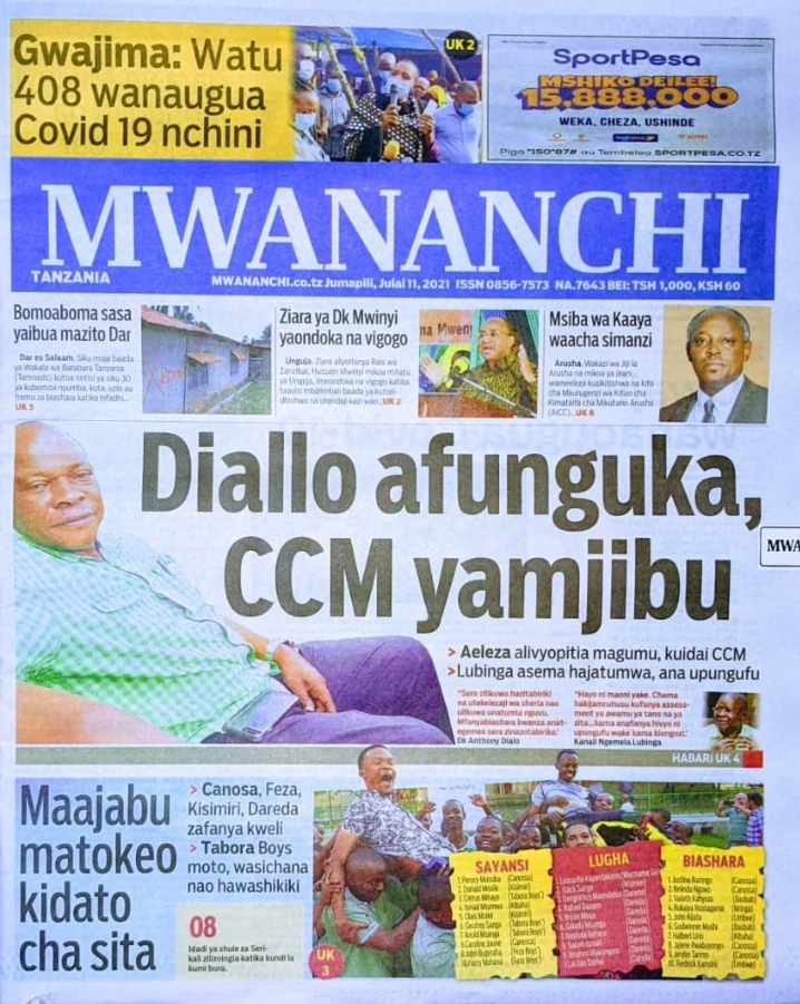 Home Uncategorized KUTOKA MEZA YA MAGAZETI ASUBUHI HII LEO J.PILI JULAI 11-2021 KUTOKA MEZA YA MAGAZETI ASUBUHI HII LEO J.PILI JULAI 11-2021 By Joseph Nelson - July 11, 2021 FacebookTwitterTelegramWhatsAppCopy URL Thank you for reading this post, don't forget to subscribe!