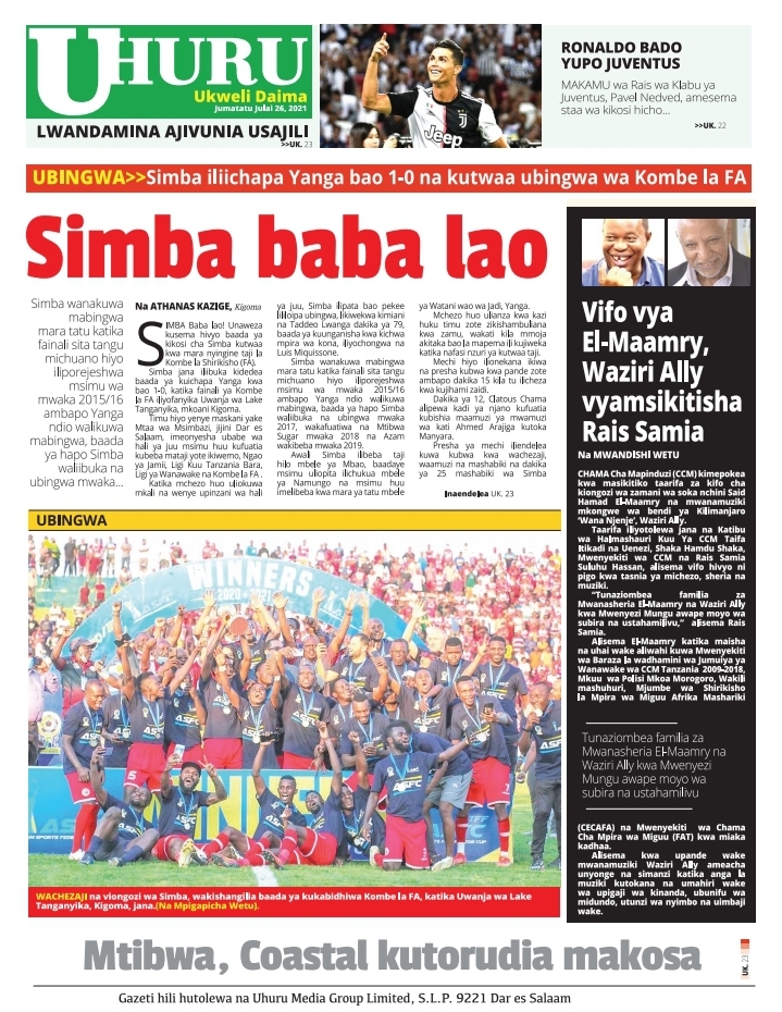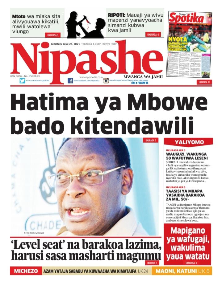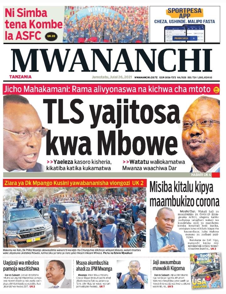 Home Uncategorized KUTOKA MEZA YA MAGAZETI ASUBUHI YA LEO J.TATU JULAI 26-2021 KUTOKA MEZA YA MAGAZETI ASUBUHI YA LEO J.TATU JULAI 26-2021 By Joseph Nelson - July 26, 2021 FacebookTwitterTelegramWhatsAppCopy URL Thank you for reading this post, don't forget to subscribe!