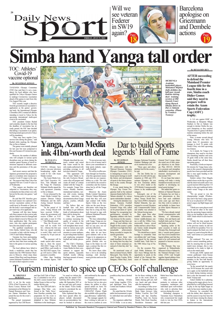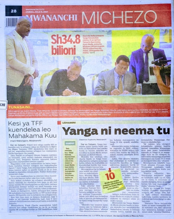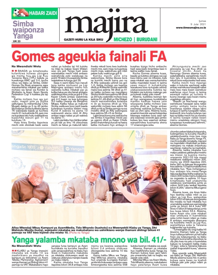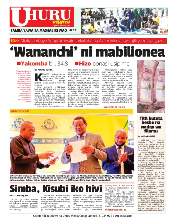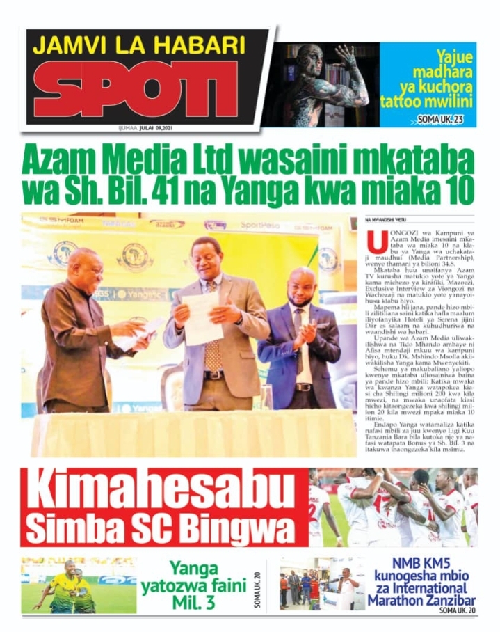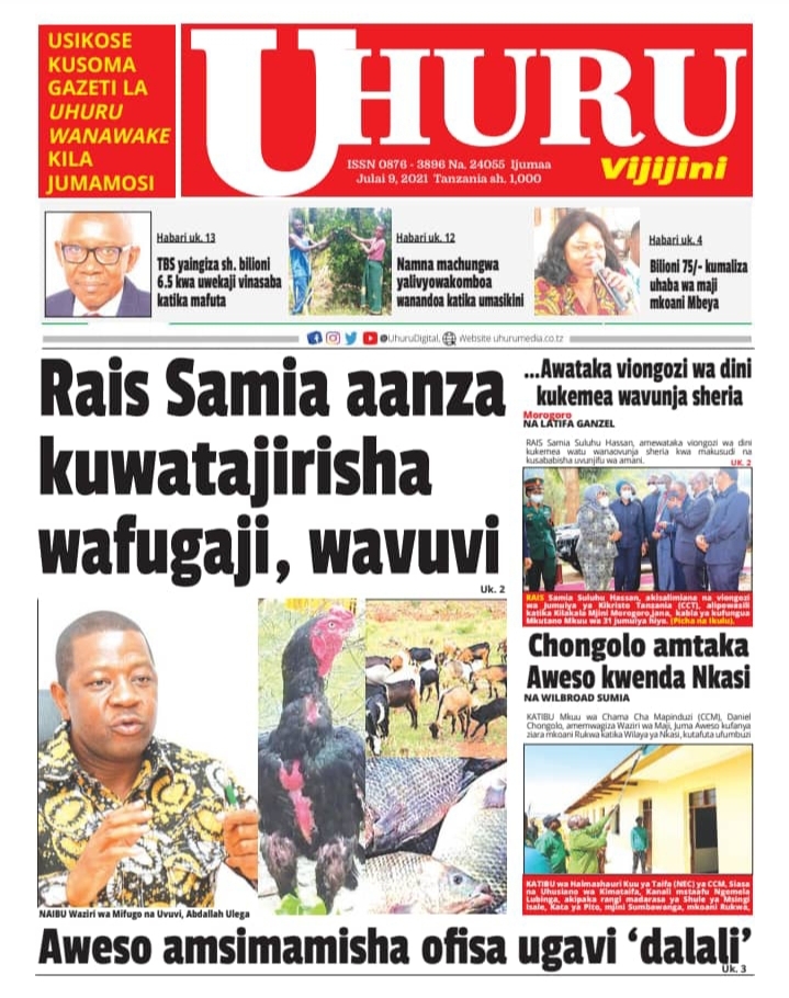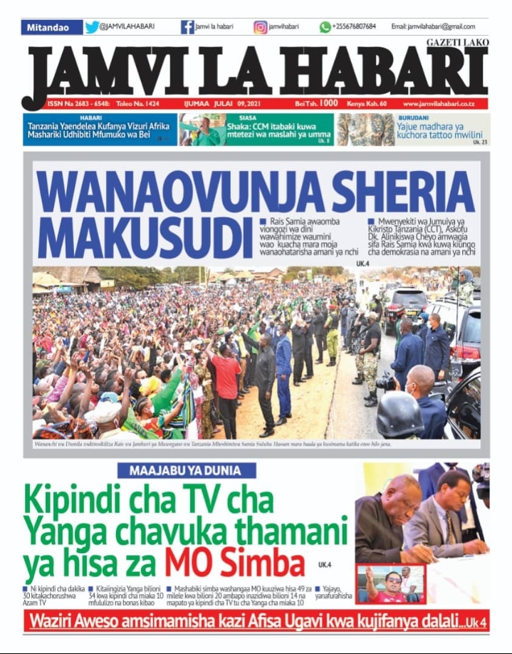 Home Uncategorized KUTOKA MEZA YA MAGAZETI ASUBUHI YA LEO JULAI 9-2021 KUTOKA MEZA YA MAGAZETI ASUBUHI YA LEO JULAI 9-2021 By Joseph Nelson - July 9, 2021 FacebookTwitterTelegramWhatsAppCopy URL Thank you for reading this post, don't forget to subscribe!