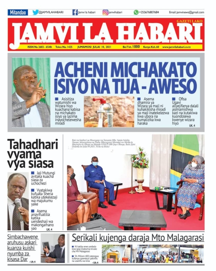 Home Uncategorized MAGAZETI YA LEO J.MOSI JULAI 10-2021 MAGAZETI YA LEO J.MOSI JULAI 10-2021 By Joseph Nelson - July 10, 2021 FacebookTwitterTelegramWhatsAppCopy URL Thank you for reading this post, don't forget to subscribe!
