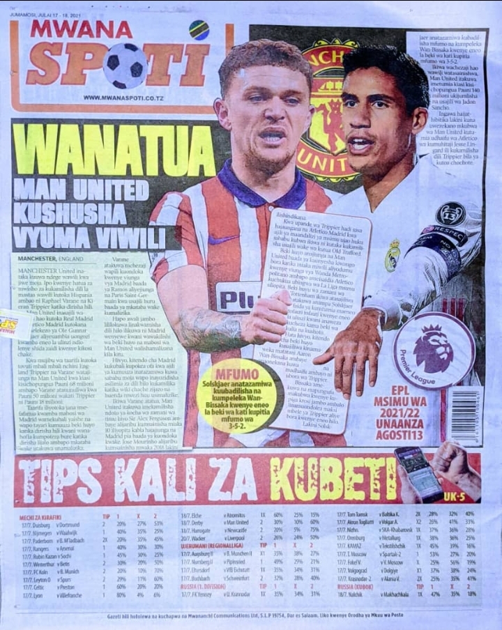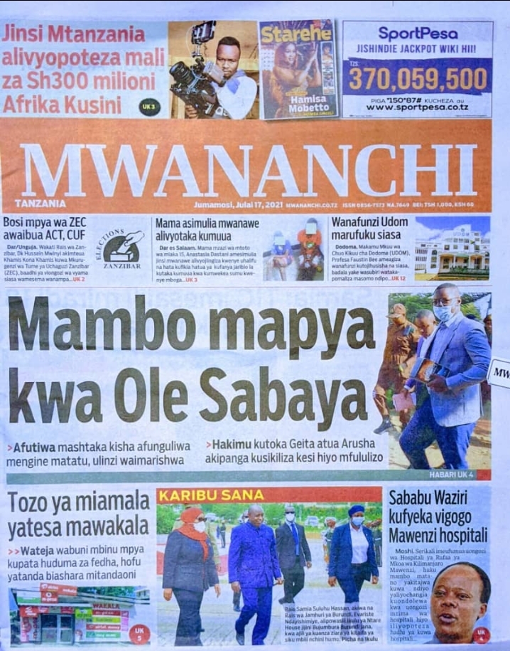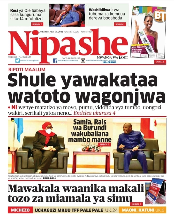 Home Uncategorized MAGAZETI YA LEO J.MOSI JULAI 17-2021 MAGAZETI YA LEO J.MOSI JULAI 17-2021 By Joseph Nelson - July 17, 2021 FacebookTwitterTelegramWhatsAppCopy URL Thank you for reading this post, don't forget to subscribe!