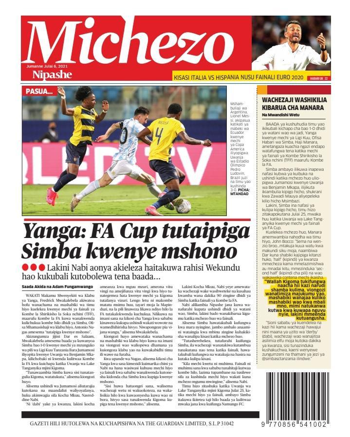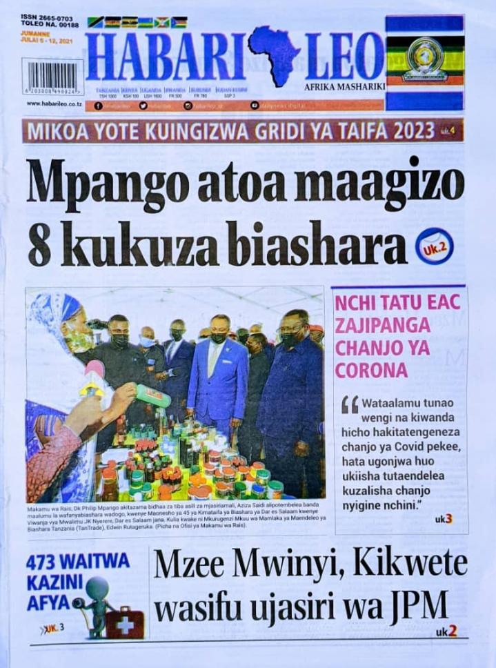 Home Uncategorized MAGAZETI YA LEO J.NNE JULAI 6-2021 MAGAZETI YA LEO J.NNE JULAI 6-2021 By Joseph Nelson - July 6, 2021 FacebookTwitterTelegramWhatsAppCopy URL Thank you for reading this post, don't forget to subscribe!