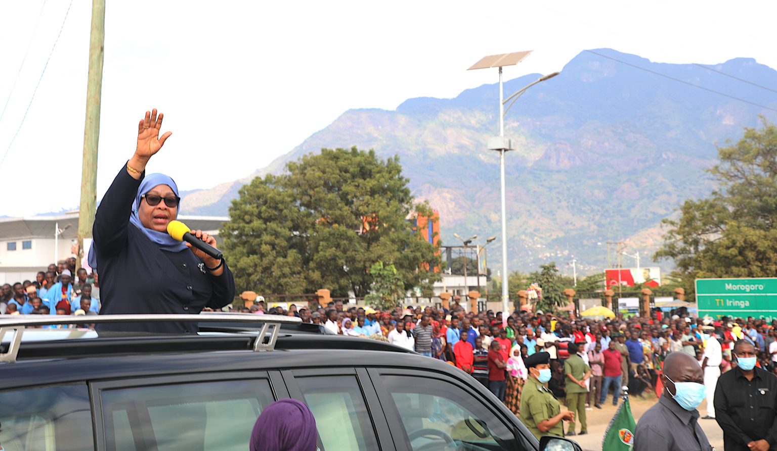 | Rais wa Jamhuri ya Muungano wa Tanzania Mhe. Samia Suluhu Hassan, akisalimiana na Wananchi mbalimbali waliojitokeza kumpokea alipowasili katika Eneo la Msamvu Mkoani Morogoro kwa ajili ya kuanza ziara ya kikazi ya siku mbili leo Julai 07,2021. Picha na Ikulu. |