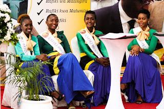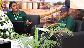 | Warembo wakiwakaribisha wageni mbalimbali wanaofika kwenye Banda la Shirika la Madini la Taifa STAMICO katika Maonesho ya 45 ya Kimataifa ya Biashara yanayoendelea katika viwanja vya Sabasaba Jijini Dar es Salaam. |