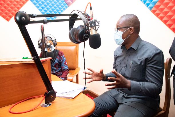 Naibu Waziri wa Mawasiliano na Teknolojia ya Habari Mhandisi Kundo Mathew akizungumza na wananchi kupitia redio Boma FM 89.3 inayomilikiwa na Halmashauri ya Wilaya ya Hai Mkoani Kilimanjaro wakati wa ziara yake ya kukagua ubora na upatikanaji wa huduma ya mawasiliano ya simu katika Wilaya hiyo.