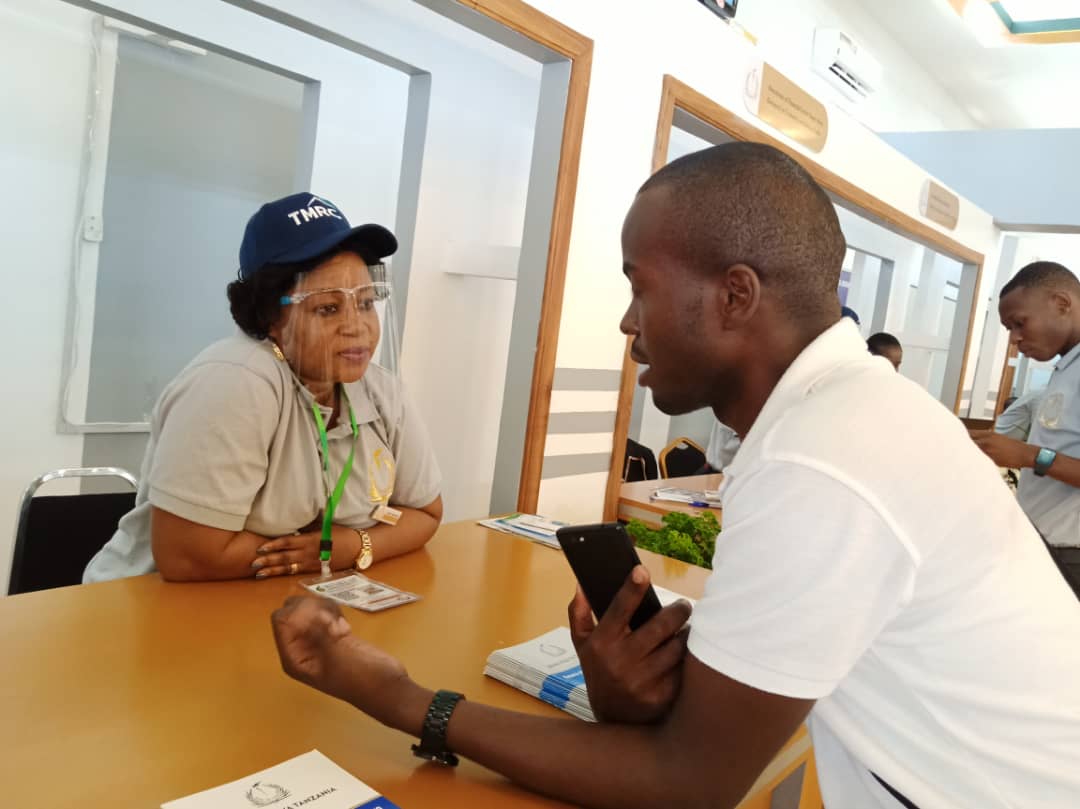 | Bw. Ephraim Madembwe Mchambuzi Mwandamizi Mifumo ya Fedha Benki Kuu ya Tanzania BoT akiwapa elimu wananchi waliotembelea banda la benki hiyo kuhusu hati fungani kwenye maonesho ya 45 ya Biashara ya Kimataifa ya Dar es Salaam kwenye viwanja vya Julius Nyerere maarufu Sabasaba barabara ya Kilwa jijini Dar es Salaam leo Julai 06, 2021. |