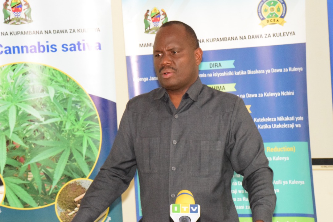 Mkurugenzi Mtendaji Mamlaka ya Kudhibiti na Kupambana na dawa za Kulevya, Kamishna Jenerali Gerald Kusaya akizungumza na waandishi wa habari (hawapo pichani) leo Jijini Dar es Salaam.