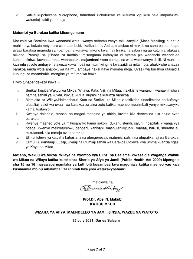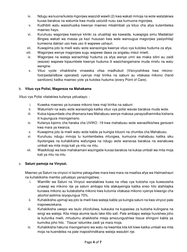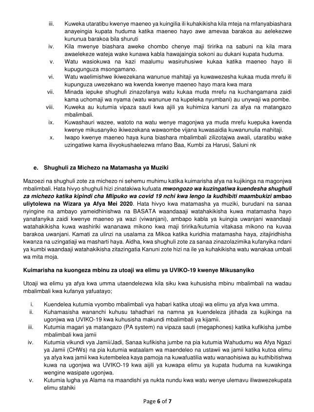 Home LOCAL WIZARA YA AFYA YATOA MWONGOZO WA UDHIBITI WA UGONJWA WA KORONA (UVIKO-19) WIZARA YA AFYA YATOA MWONGOZO WA UDHIBITI WA UGONJWA WA KORONA (UVIKO-19) By Joseph Nelson - July 25, 2021 FacebookTwitterTelegramWhatsAppCopy URL Thank you for reading this post, don't forget to subscribe!