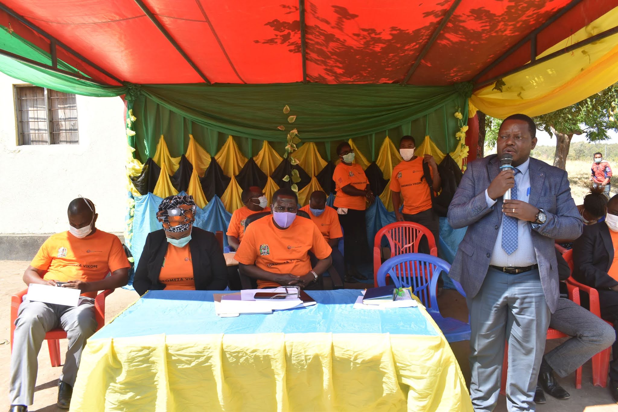Mkuu wa Wilaya ya Sumbawanga Sebastian Waryoba akizungumza kwa niaba ya Mkuu wa Mkoa wa Rukwa kwenye uzinduzi wa kampeni ya usawazishaji wa Vikope kwa wananchi wenye matatizo ya macho jana kwenye Kituo cha Afya Matai wilaya ya Kalambo.