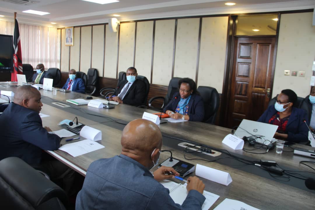 | Kikao Cha Makatibu Wakuu na Wataalamu wa Wizara ya Afya Nchini Tanzania na Kenya wakijadiliana kuhusiana na Corona mpiakani kikao kilichofanyika Kwenye ukumbi wa Wizara ya Afya mjini Nairobi. |