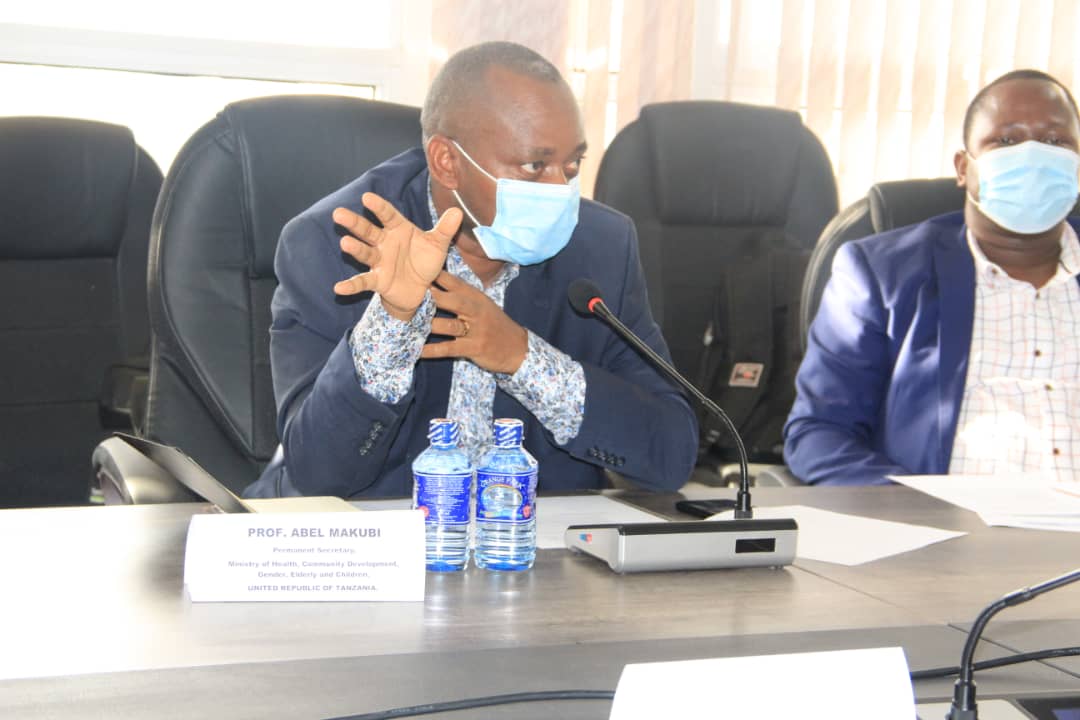 | Prof.Abel Makubi Katibu Mkuu Wizara ya Afya Tanzania akiongea wakati wa kikao Cha awali Cha Makatibu Wakuu na Wataalam wa Afya baina ya nchi ya Tanzania na Kenya. |