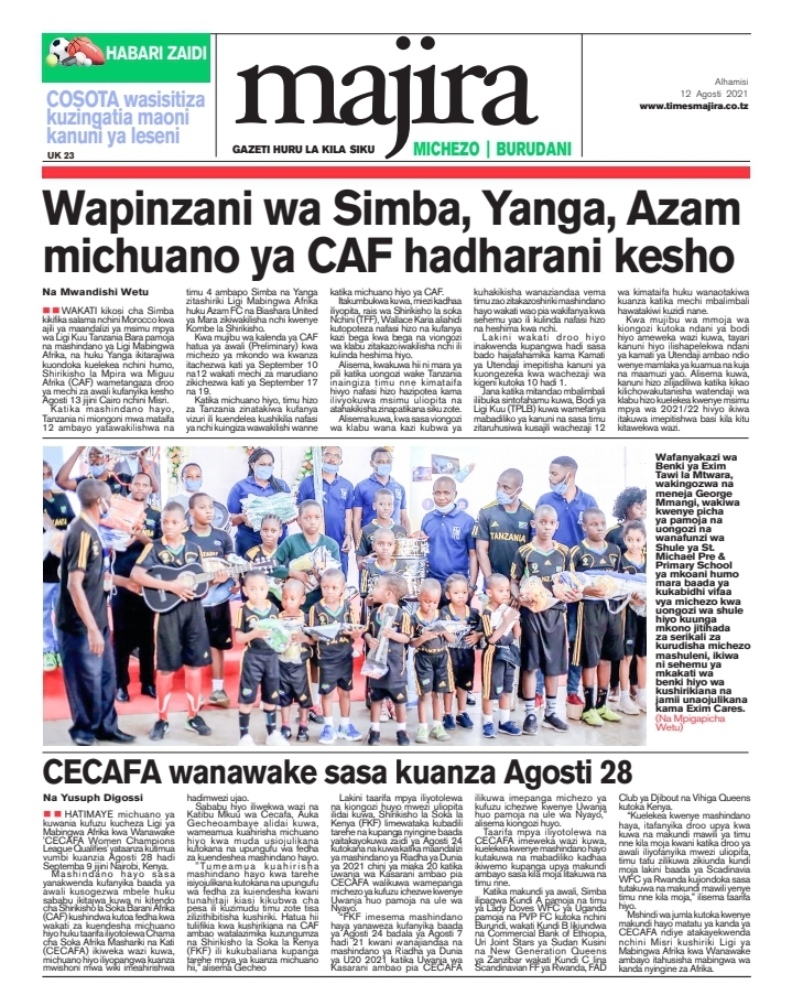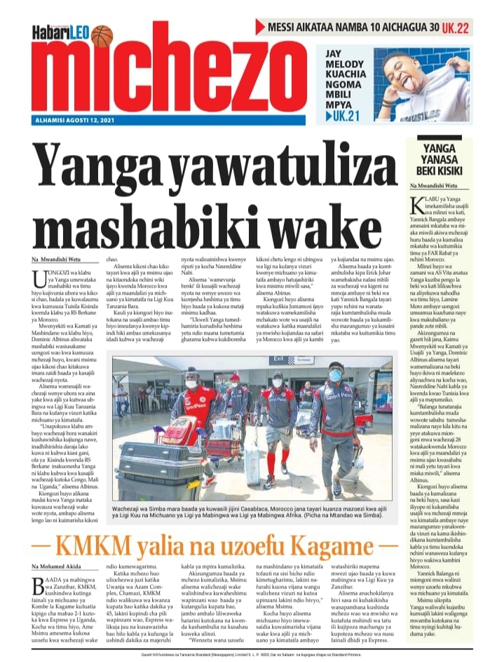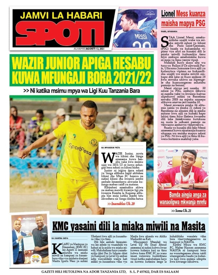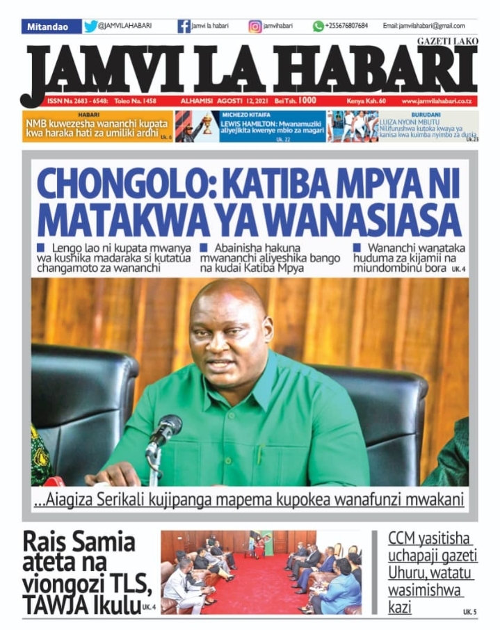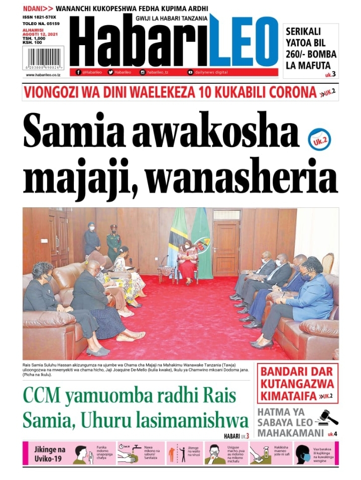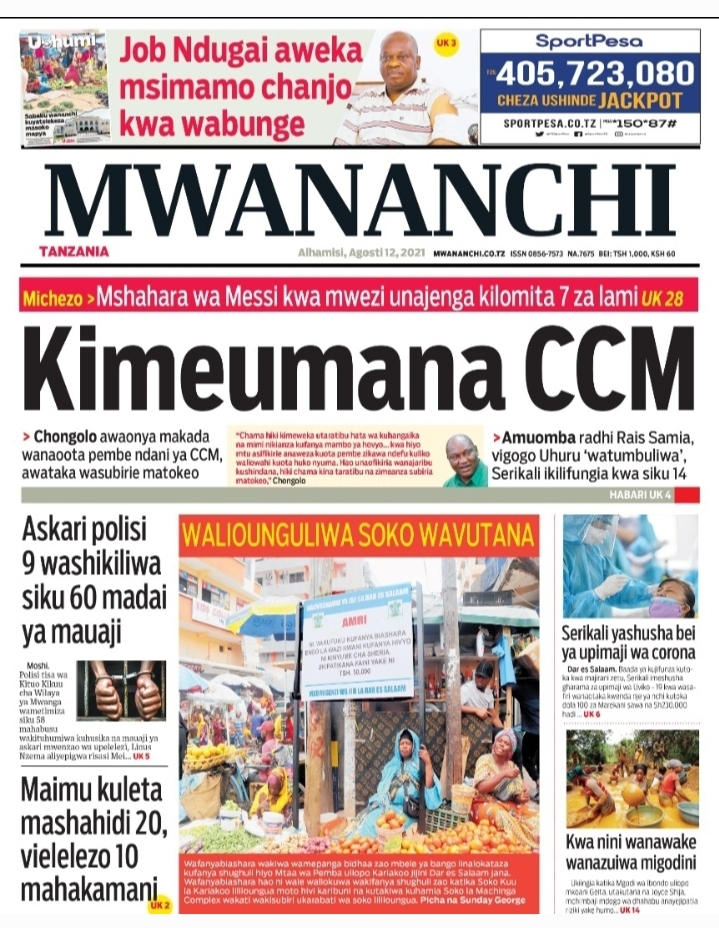 Home Uncategorized KUTOKA MEZA YA MAGAZETI ASUBUHI YA LEO ALHAMISI AGOSTI 12-2021 KUTOKA MEZA YA MAGAZETI ASUBUHI YA LEO ALHAMISI AGOSTI 12-2021 By Joseph Nelson - August 12, 2021 FacebookTwitterTelegramWhatsAppCopy URL Thank you for reading this post, don't forget to subscribe!