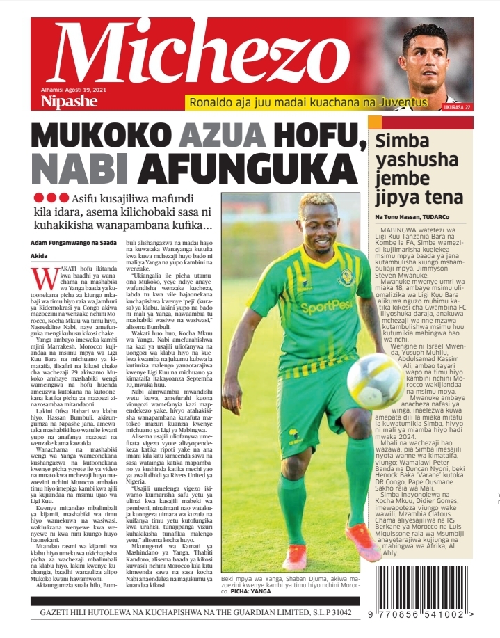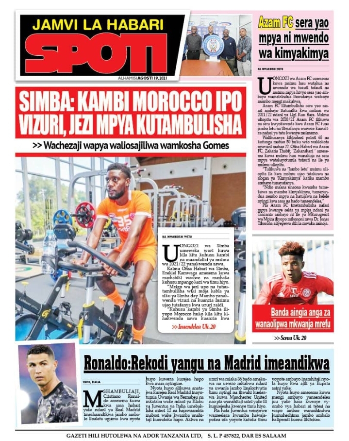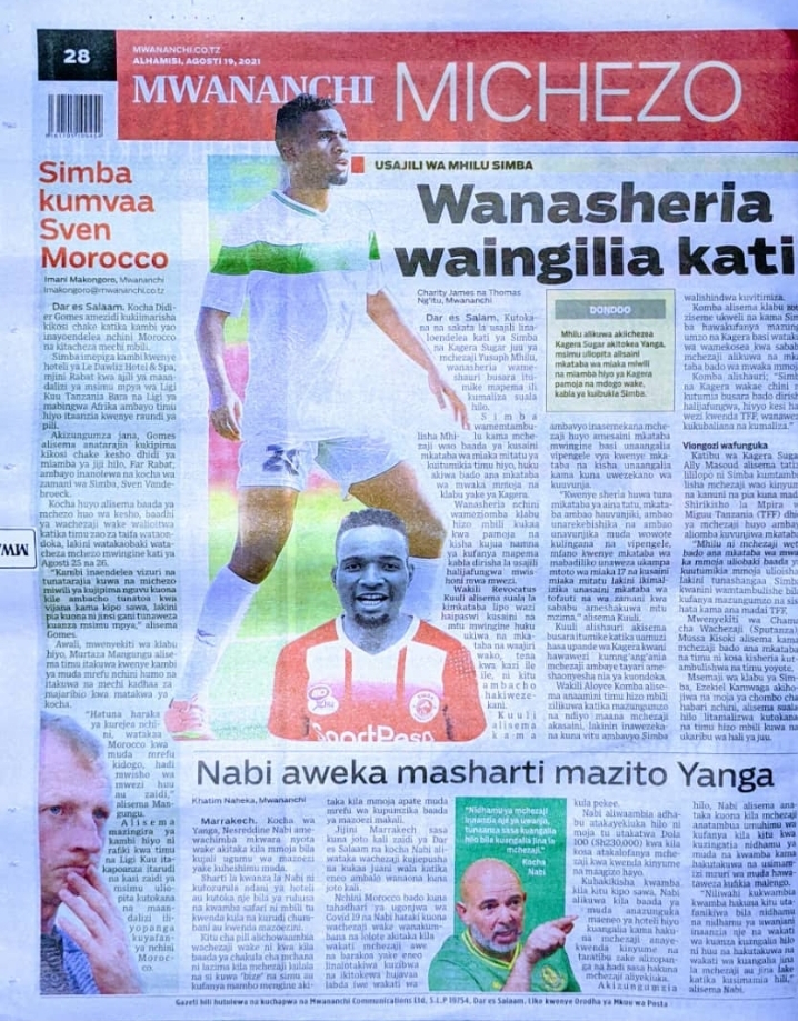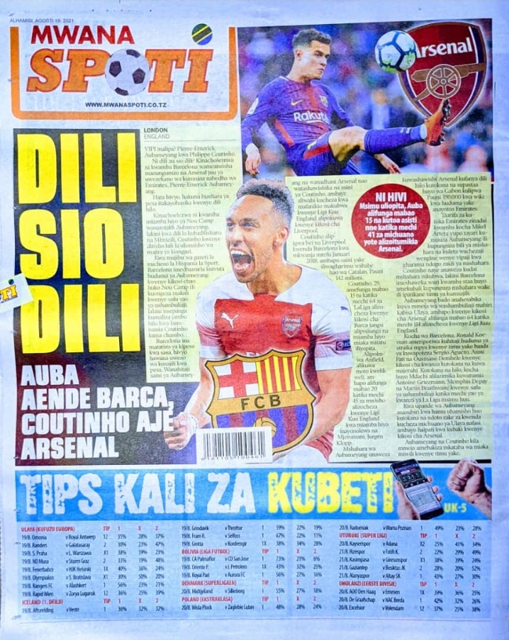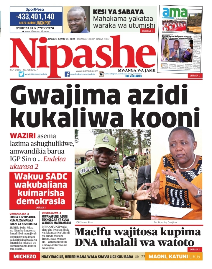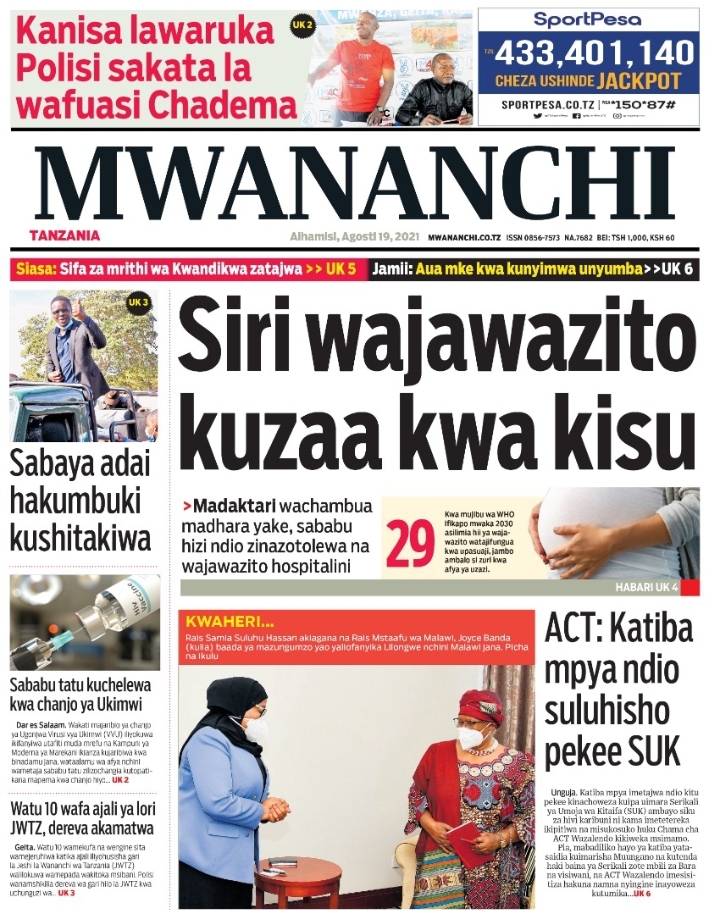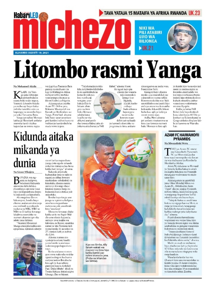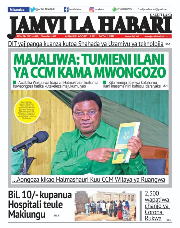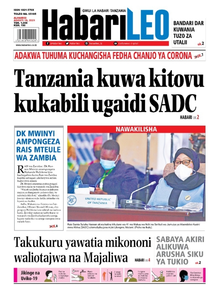 Home NEWSPAPERS KUTOKA MEZA YA MAGAZETI ASUBUHI YA LEO ALHAMISI AGOSTI 19-2021 KUTOKA MEZA YA MAGAZETI ASUBUHI YA LEO ALHAMISI AGOSTI 19-2021 By Joseph Nelson - August 19, 2021 FacebookTwitterTelegramWhatsAppCopy URL Thank you for reading this post, don't forget to subscribe!