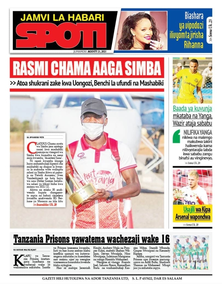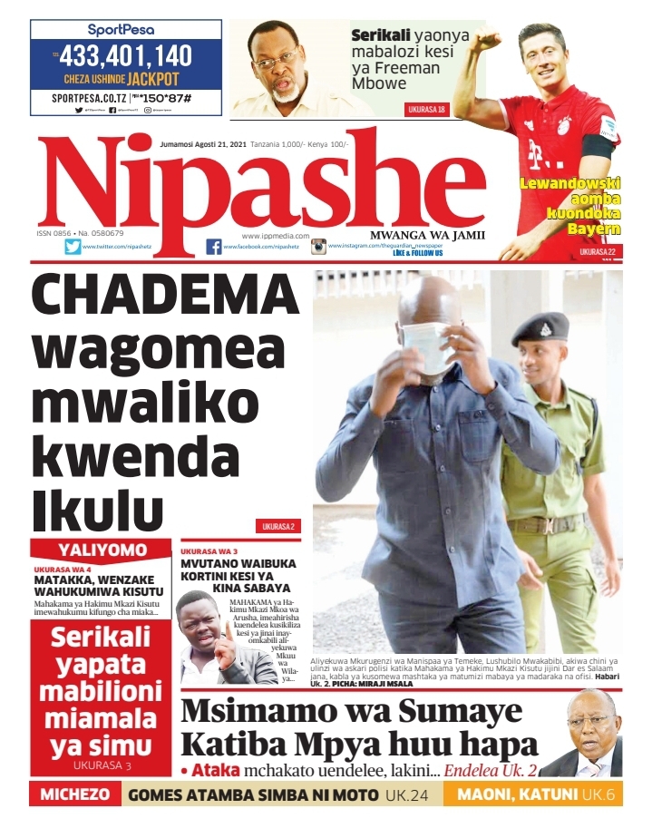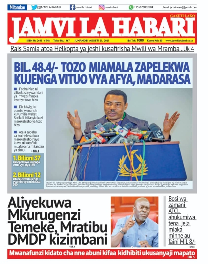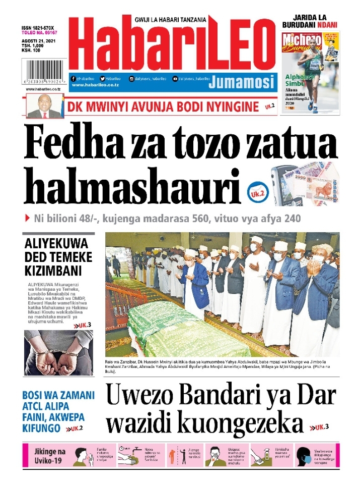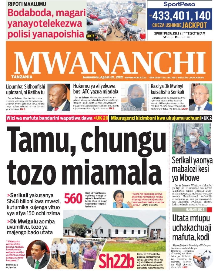 Home NEWSPAPERS KUTOKA MEZA YA MAGAZETI ASUBUHI YA LEO J.MOSI AGOSTI 21-2021 KUTOKA MEZA YA MAGAZETI ASUBUHI YA LEO J.MOSI AGOSTI 21-2021 By Joseph Nelson - August 21, 2021 FacebookTwitterTelegramWhatsAppCopy URL Thank you for reading this post, don't forget to subscribe!