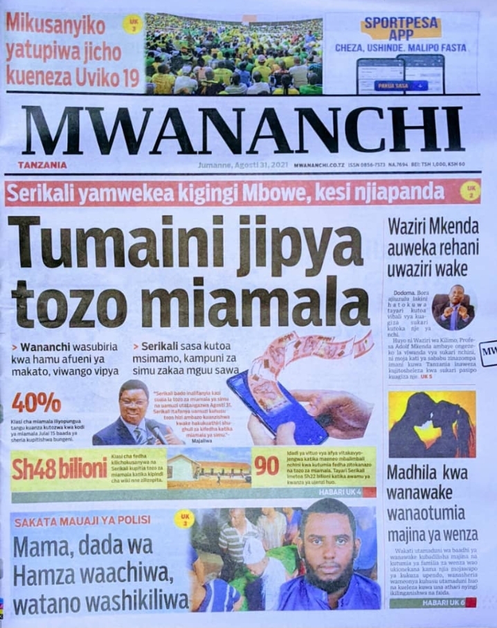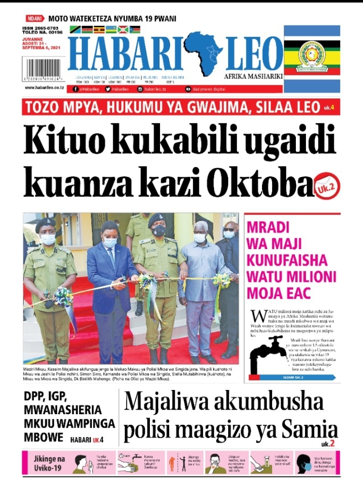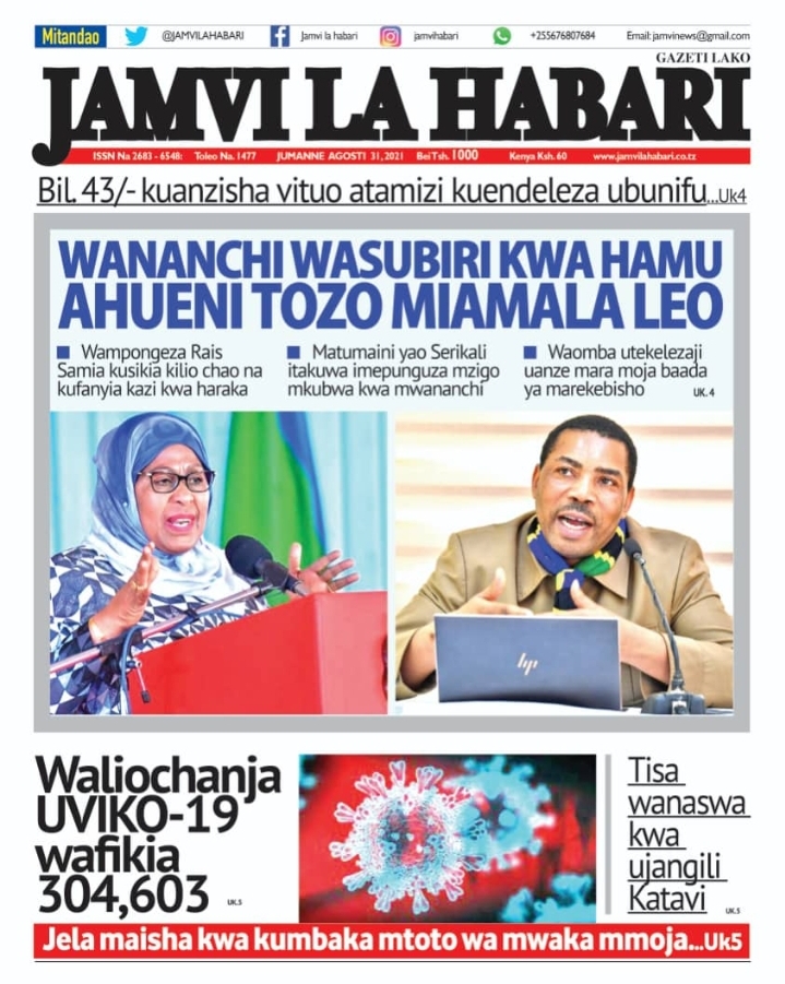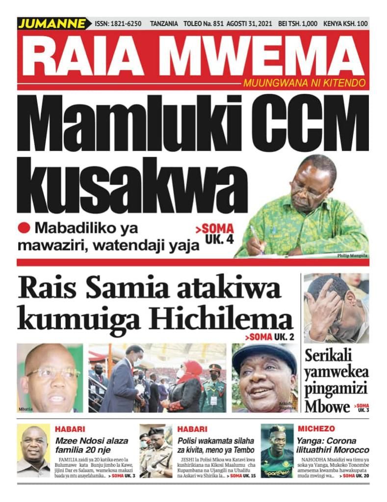 Home Uncategorized KUTOKA MEZA YA MAGAZETI ASUBUHI YA LEO J.NNE AGOSTI 31-2021 KUTOKA MEZA YA MAGAZETI ASUBUHI YA LEO J.NNE AGOSTI 31-2021 By HUGHES DUGILO - August 31, 2021 FacebookTwitterTelegramWhatsAppCopy URL Thank you for reading this post, don't forget to subscribe!