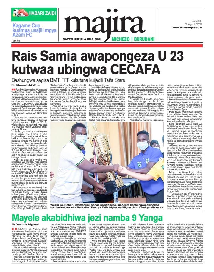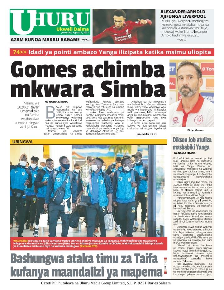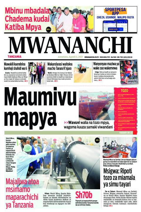 Home Uncategorized KUTOKA MEZA YA MAGAZETI ASUBUHI YA LEO J.TATU OGASTI 2-2021 KUTOKA MEZA YA MAGAZETI ASUBUHI YA LEO J.TATU OGASTI 2-2021 By Joseph Nelson - August 2, 2021 FacebookTwitterTelegramWhatsAppCopy URL Thank you for reading this post, don't forget to subscribe!
