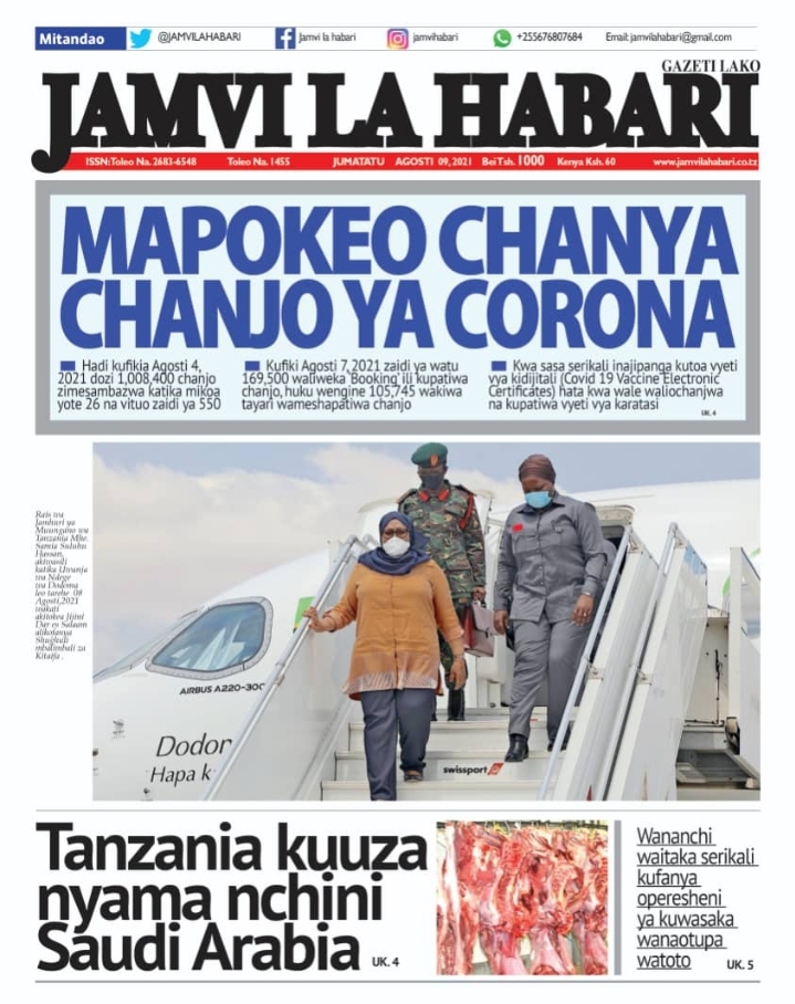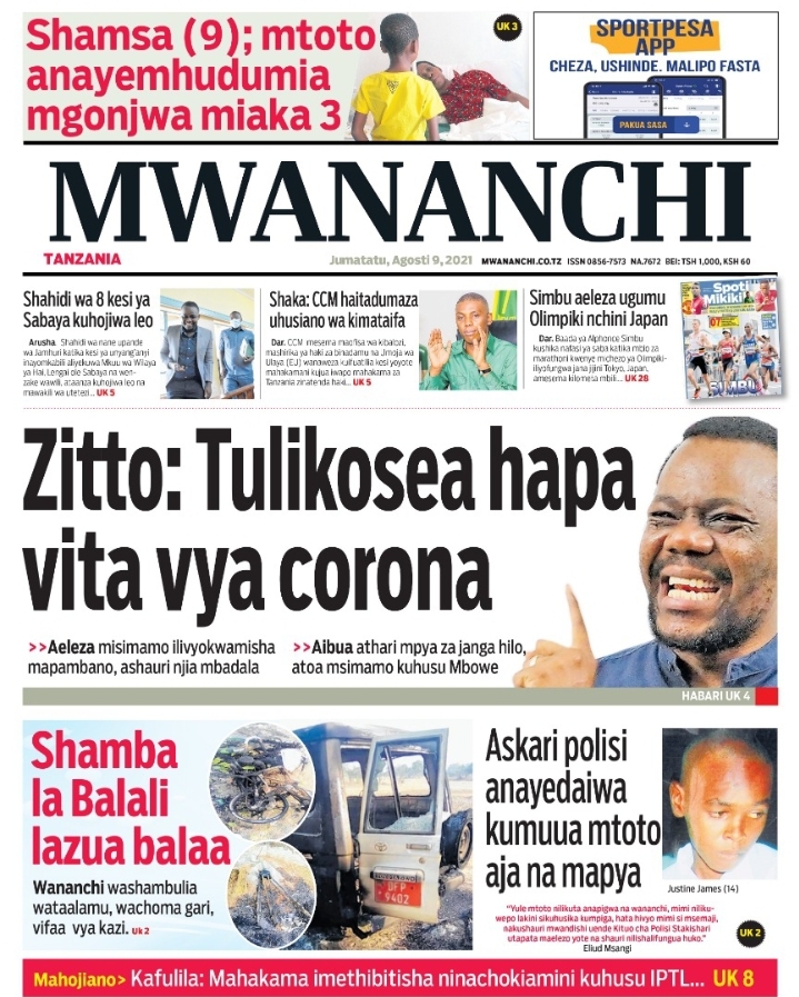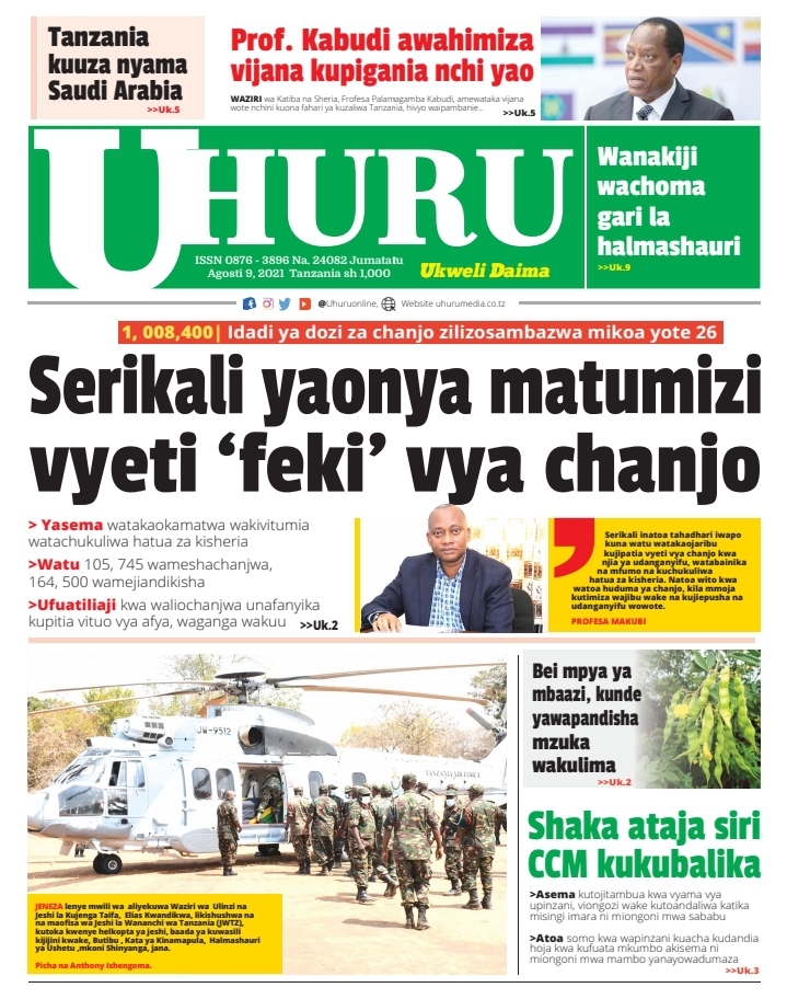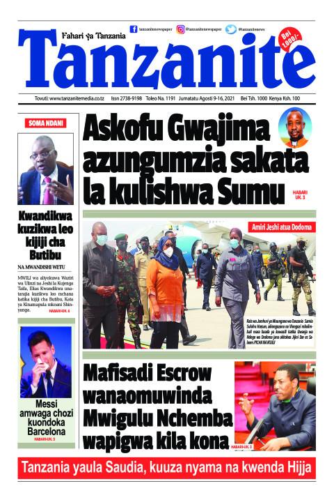 Home Uncategorized MAGAZETI YA LEO J.TATU AGOSTI 9-2021 MAGAZETI YA LEO J.TATU AGOSTI 9-2021 By Joseph Nelson - August 9, 2021 FacebookTwitterTelegramWhatsAppCopy URL Thank you for reading this post, don't forget to subscribe!